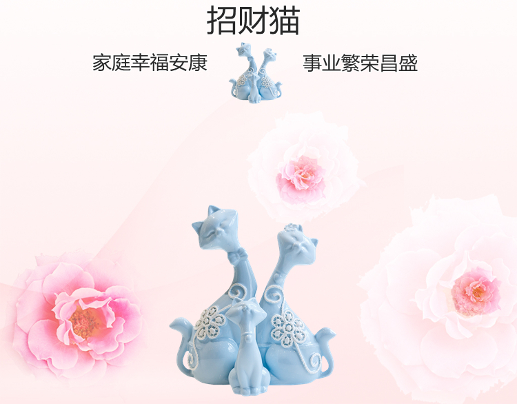 天藍色創意優質玉瓷貓擺件簡約現代田園客廳工藝電視酒柜臥室家具裝飾品