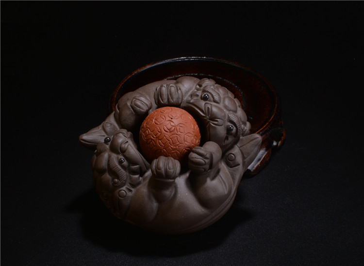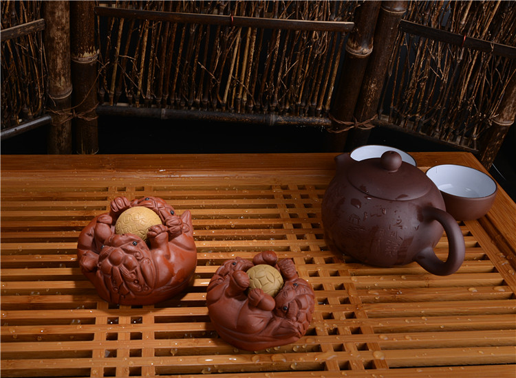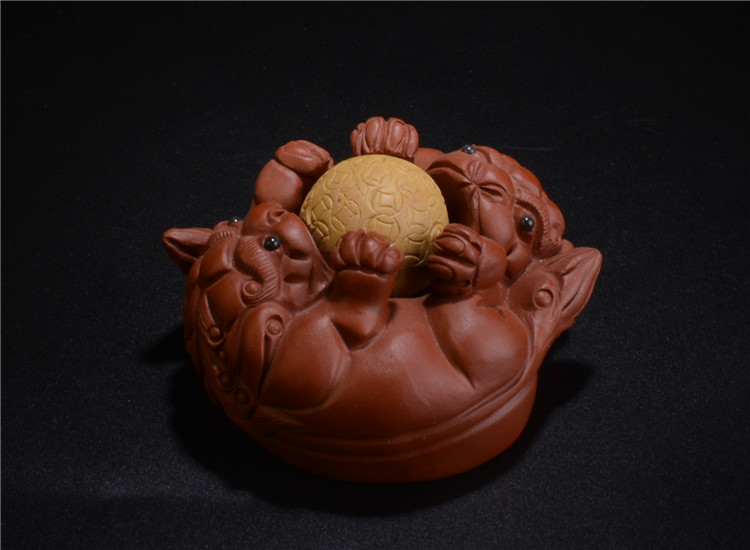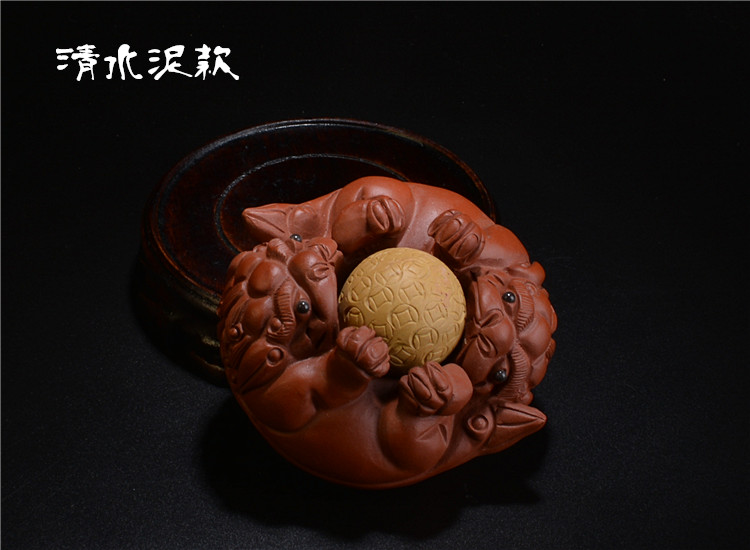 大號紅宜興正品紫砂茶寵獅子繡球雕塑擺件茶具時來運轉精品茶玩茶盤擺件
