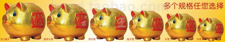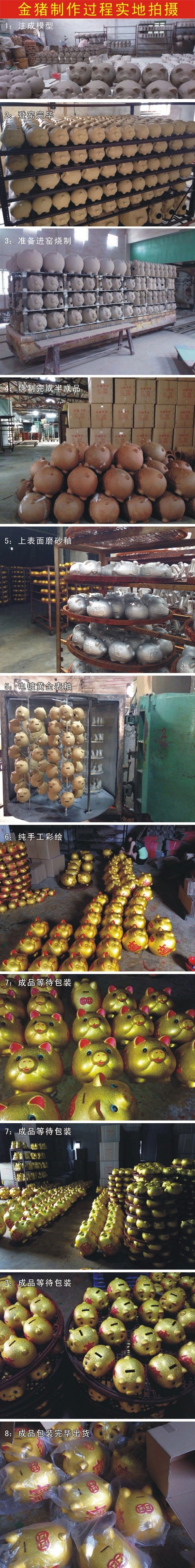 寶貝材料:陶瓷 寶貝尺寸:29*22*2012寸指的是12英寸 寶貝尺寸:33*25*2414寸指的是14英寸 寶貝尺寸:37*31.5*2916寸指的是16英寸 寶貝尺寸:42.1*35*3420寸指的是20英寸寶貝包裝:彩盒包裝 特別說明豬的四個豬腳上有四個洞有貼密封并不是次品哦,是透氣孔,燒制時才不會炸開。 ![]() ![]() ![]() 金豬報喜 金豬納福 全身金色,陶瓷金豬,祝您天天發大財! 民間常的肥壯當作是財富的象征,所以在室內或店內放個招財豬,是招財納富的含義。金豬儲錢罐采用優質陶瓷制作而成,儲錢罐為一只滾圓的小豬的造型,顏色為金色,小豬身上有銅錢圖案和招財進寶四個紅色的字,背部有一個方孔,可以投硬幣。產品可以當儲錢罐用,背部有一小孔可以放入錢幣,裝后,底部有一個塞子,取出后可以將錢幣從底部取出!金豬儲錢罐外觀精美,質量過觀, 是家居理想的擺設物品 顯得高貴而典雅。可以用來擺放在家里,辦公室、酒店等場所作為一種裝飾品,也可以作為收藏的工藝品,適宜用來作為饋贈朋友的禮品。 ![]() ![]() |