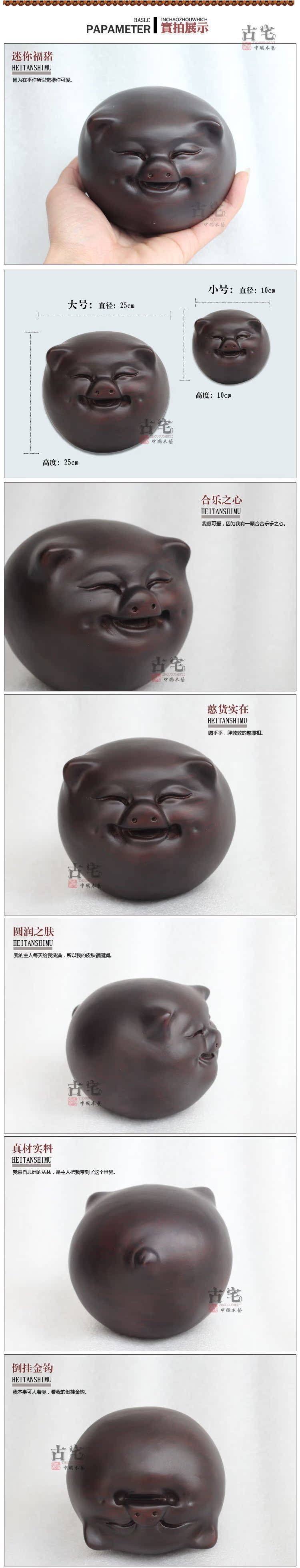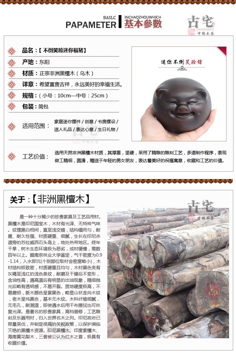 10cm黑檀木 紅木小擺件臥室可愛不倒迷你小豬送人生日禮物實木質雕刻
