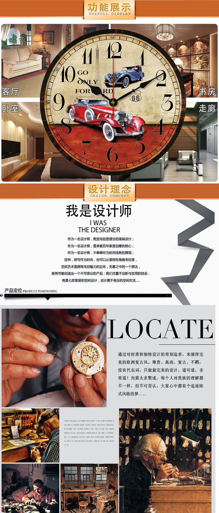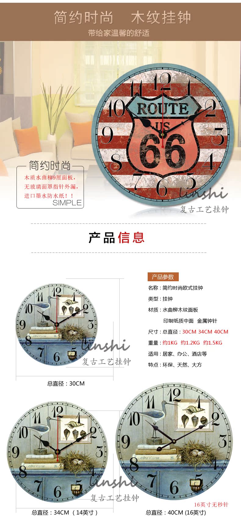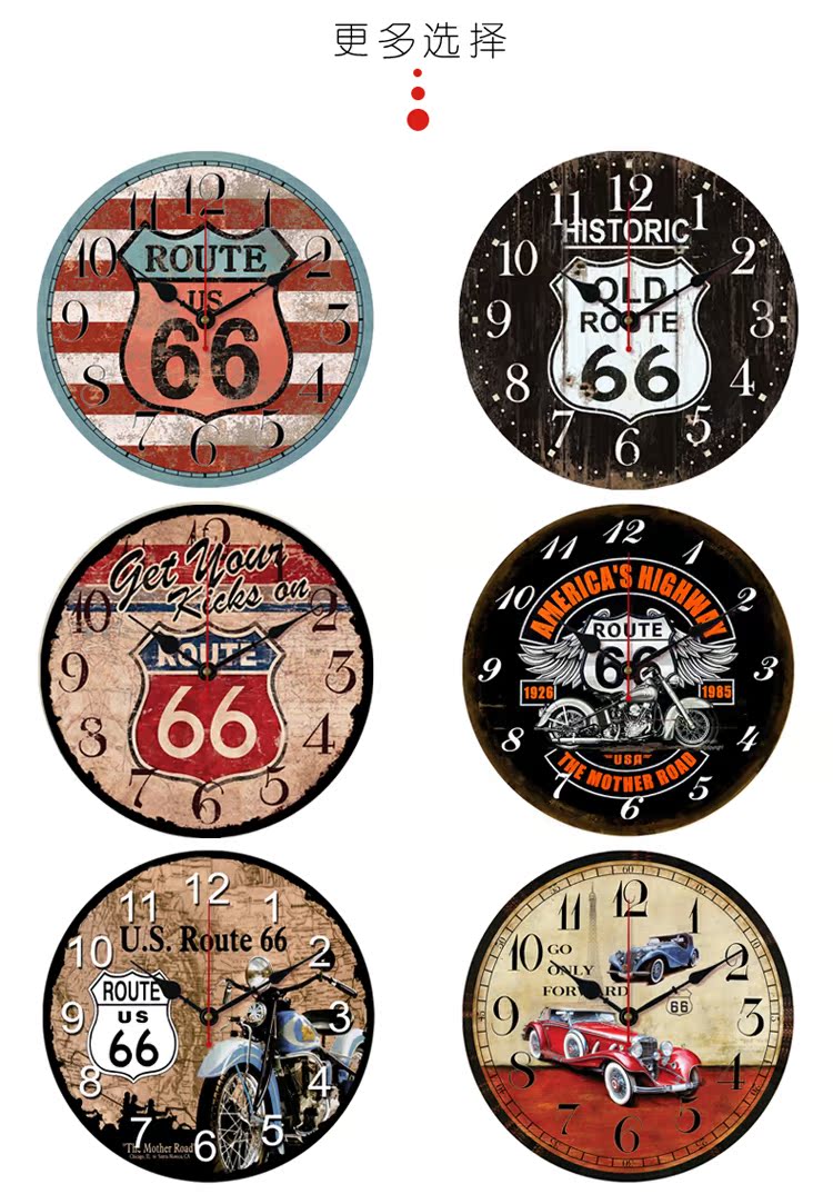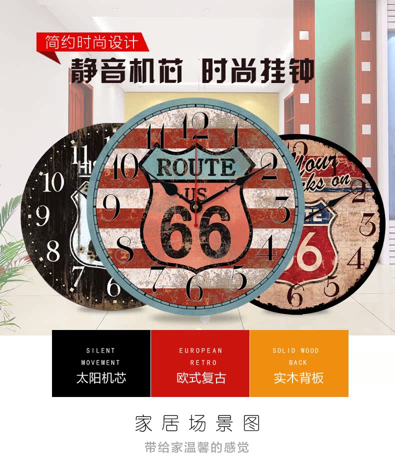 01款12英寸歐式壁鐘仿古66號公路掛鐘客廳創意正品大掛鐘表英旗