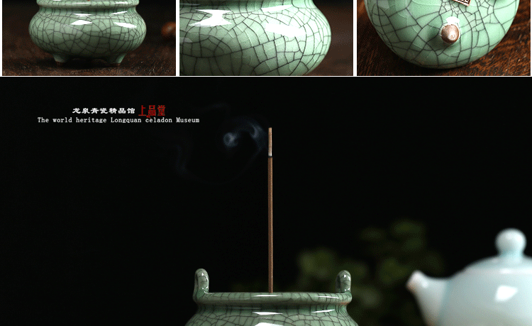 哥窯米黃鐵線陶瓷線香插香器佛教佛具用品仿古三足香爐盤香線香香薰爐居室擺件
