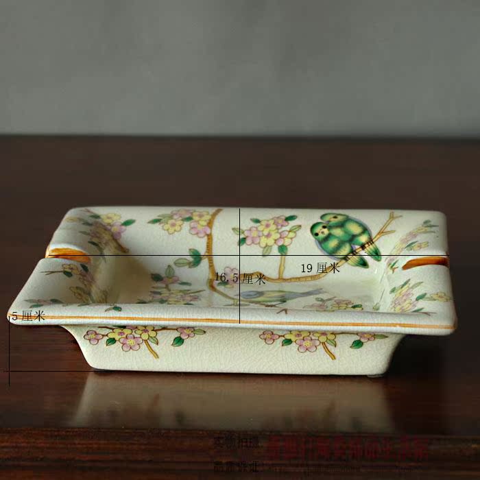 | 本公司大部分商品6一10天到貨。不接急單。急單的客戶請不要下單。感謝諒解與合作! 品名:歐式復古煙灰缸 規格:高:5cm 直徑:16.5cm*19cm 材質:瓷 工藝:裂紋開片 風格:歐式復古/中式混搭 裂紋釉又稱開片紋 源于宋代,景德鎮大量有紋片釉裝飾瓷器則是始于明代,到清代雍正 乾隆年間得到顯著提高 其紋飾不假以人工 純乎天然逸品 實物拍圖 兩口形