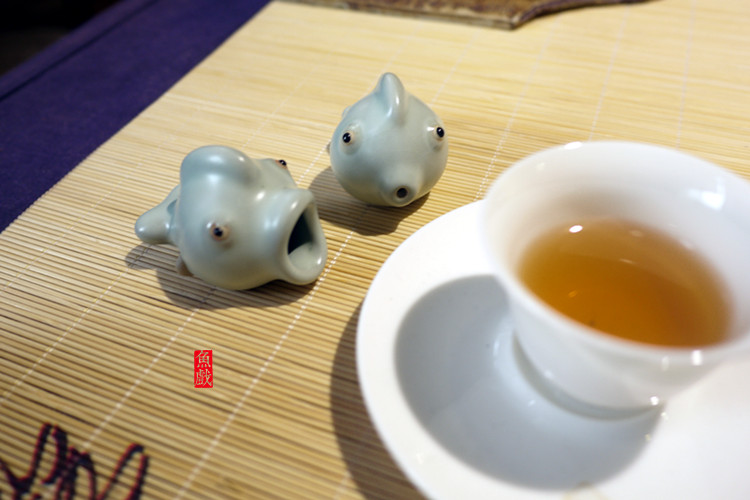 哇哇魚戲 精品陶瓷茶具汝窯茶寵 鯉魚牛擺件 茶水可養開片 年年有余