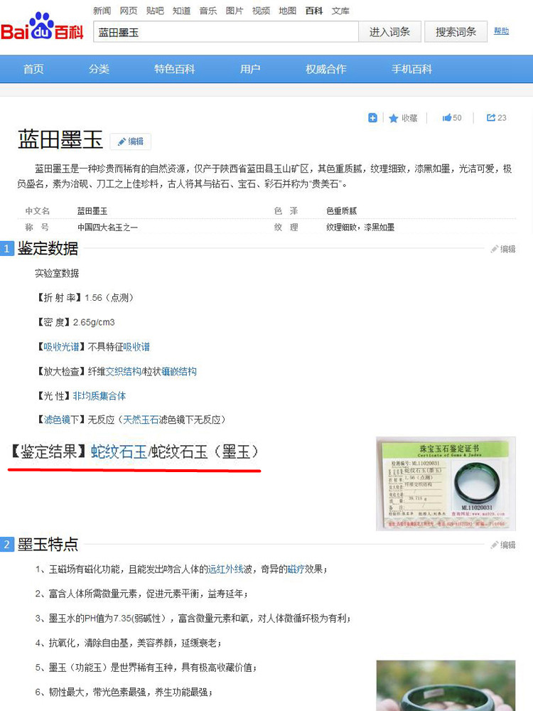 百年保真 拒絕贗品 傳世品牌 、 關于黑綠玉的介紹: 功能玉/墨綠玉屬巖漿類玉礦屬于蛇紋石玉,是我國稀有玉種.億萬年的地火淬煉使其獨具強磁性,對人類所特有的保健功效正在被漸漸發掘,所以被稱之為“藥王石”。又稱黑綠玉、蛇紋玉、碧玉,質密堅硬,薄片透明,眼見為黑,光照為綠,磨粉為白,其中富含6.73%的活性磁鐵素和人類健康所需的26種微量素。Fe鐵、F氯、Zn鋅、Cu銅、Sn錫、V釩、Mn錳、Cr鉻、I碘、Se硒、Mo鉬、Ni鎳、As砷、Co鈷和宏量素O氧、C碳、H氫、N氮、Ca鈣、P磷、S硫、K鉀、Na鈉、Cl氯、Mg鎂、Si硅,有雙調節和強滲透及排除人體內毒素的神奇功效。 【商品材質】藍田玉 墨玉 【鑒定結果】蛇紋石玉 【商品產地】藍田 【鑒定結論】天然 A 貨 【寶貝特性】保健功能 此款寶貝不帶證書,需要證書的親請加10鑒定費,費用由鑒定中心收取。 【關于色差】由于受電腦手機顯示亮度,自然光線亮度等等因素所影響,每件寶貝都會有不同成度的色差,親在下單之前要有所思量,每件寶貝顏色都以實物為準。 【天然玉石特征】分布有棉絮紋,點狀或線狀的“眼”,個別會有裂痕,這些都是天然玉石自身形成,也偶有打磨痕跡, 不屬于瑕疵范疇。我們已經盡量把最真實的實物效果展示在親們面前,親請認真看詳情,要求完美的親不要拍,拍前請考慮清楚,退換貨麻煩買家承擔。