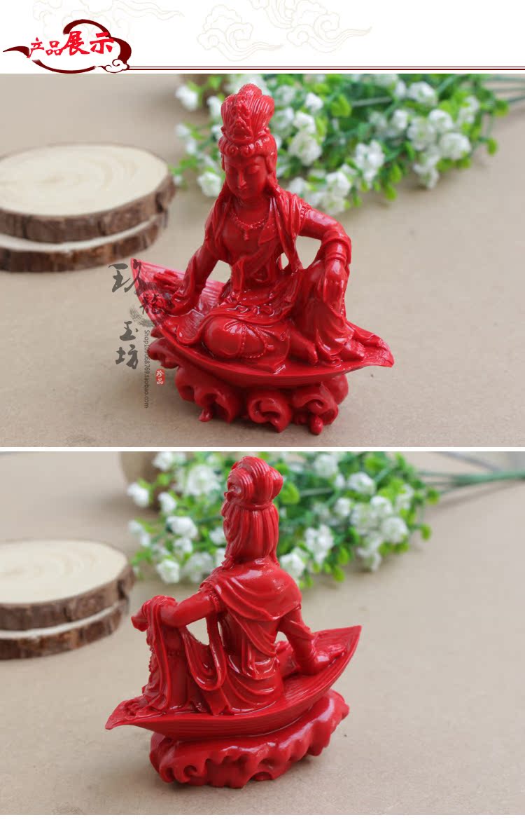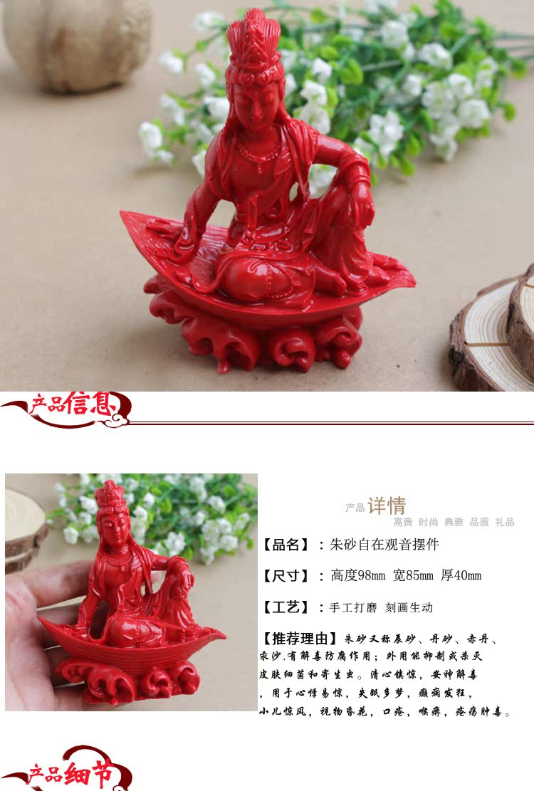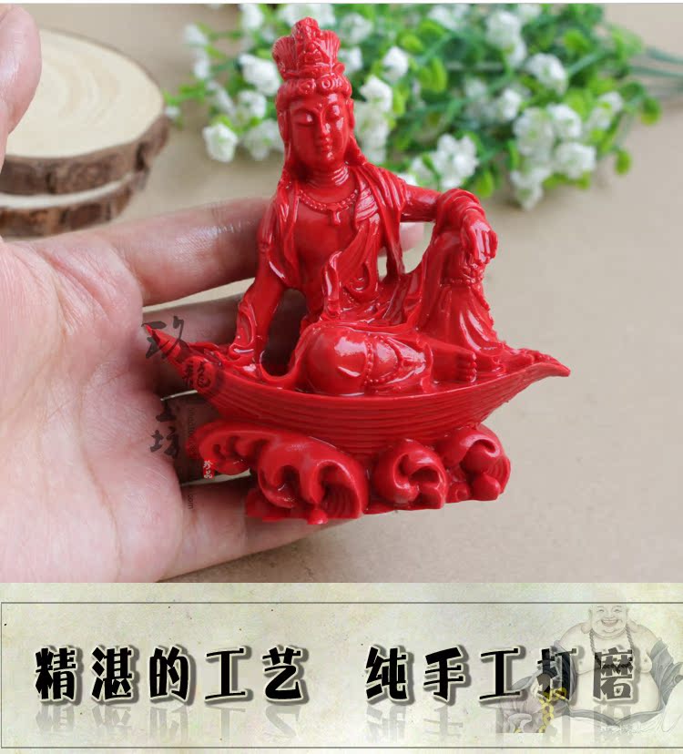 正品朱砂觀音擺件自在觀音小擺臺車載擺臺佛像擺件 工藝品裝飾品