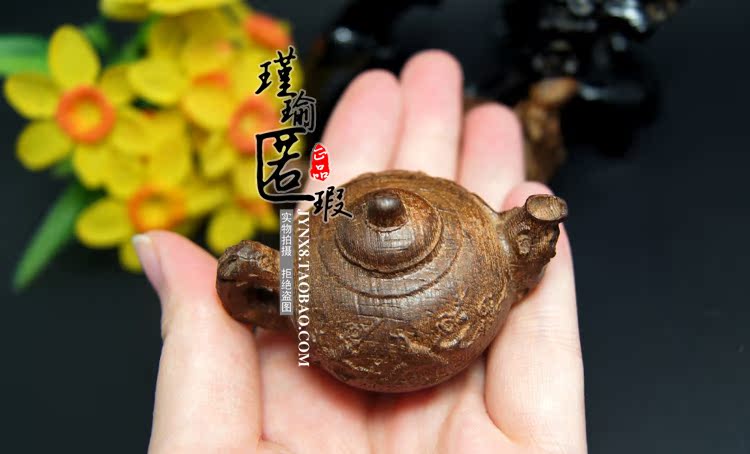 大瑾瑜匿瑕 正品天然沉香木手把件 實木雕刻家居工藝品手玩擺件茶壺