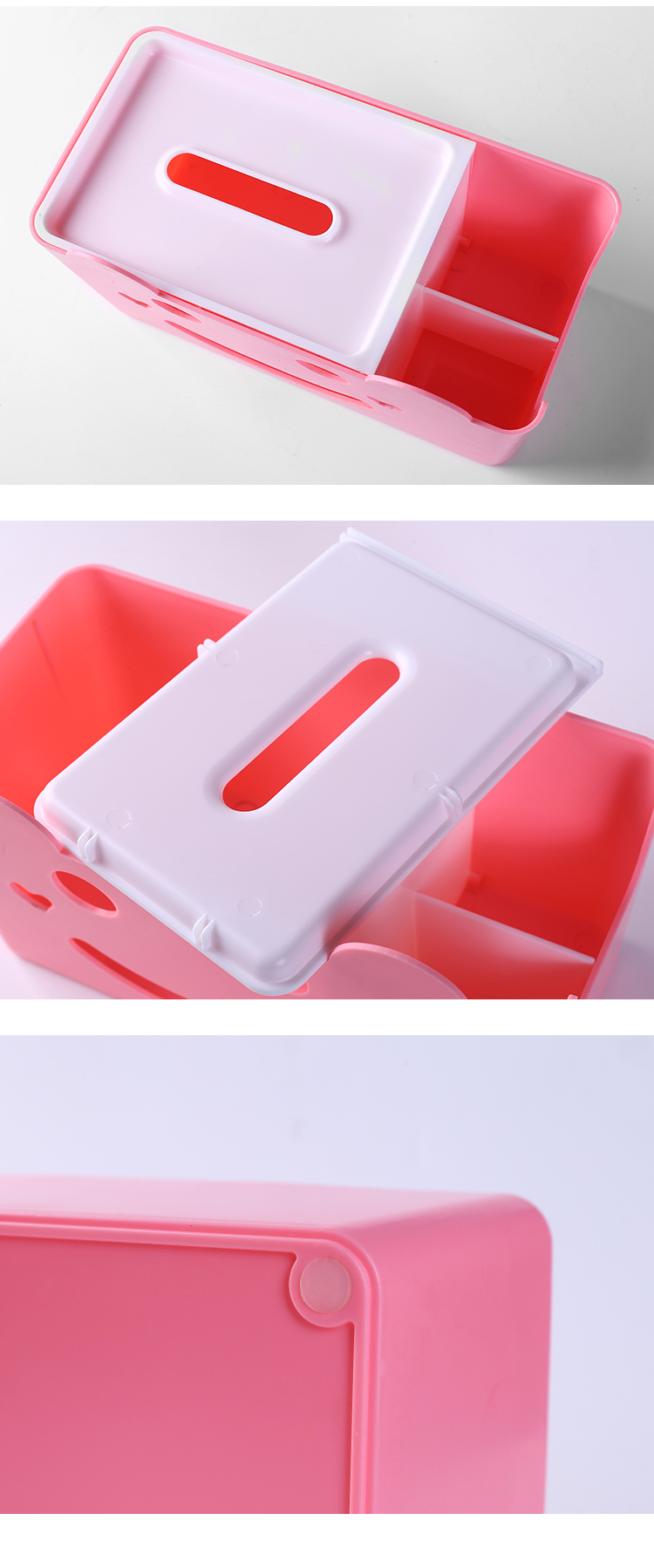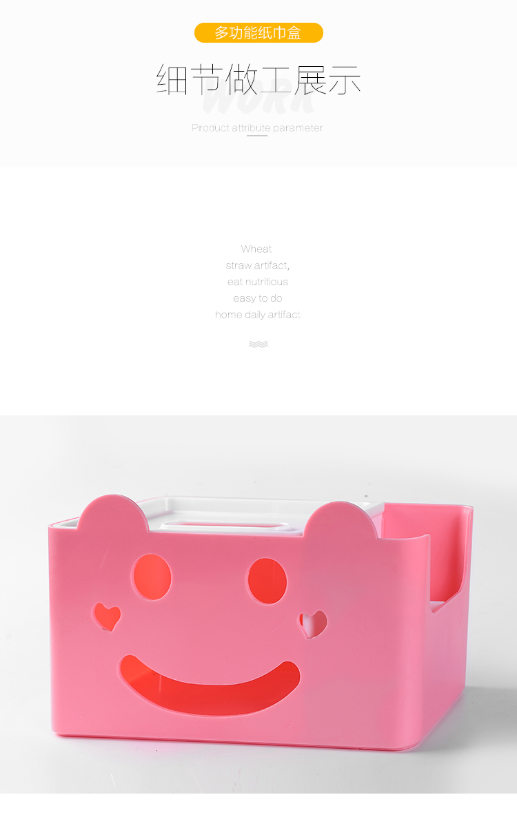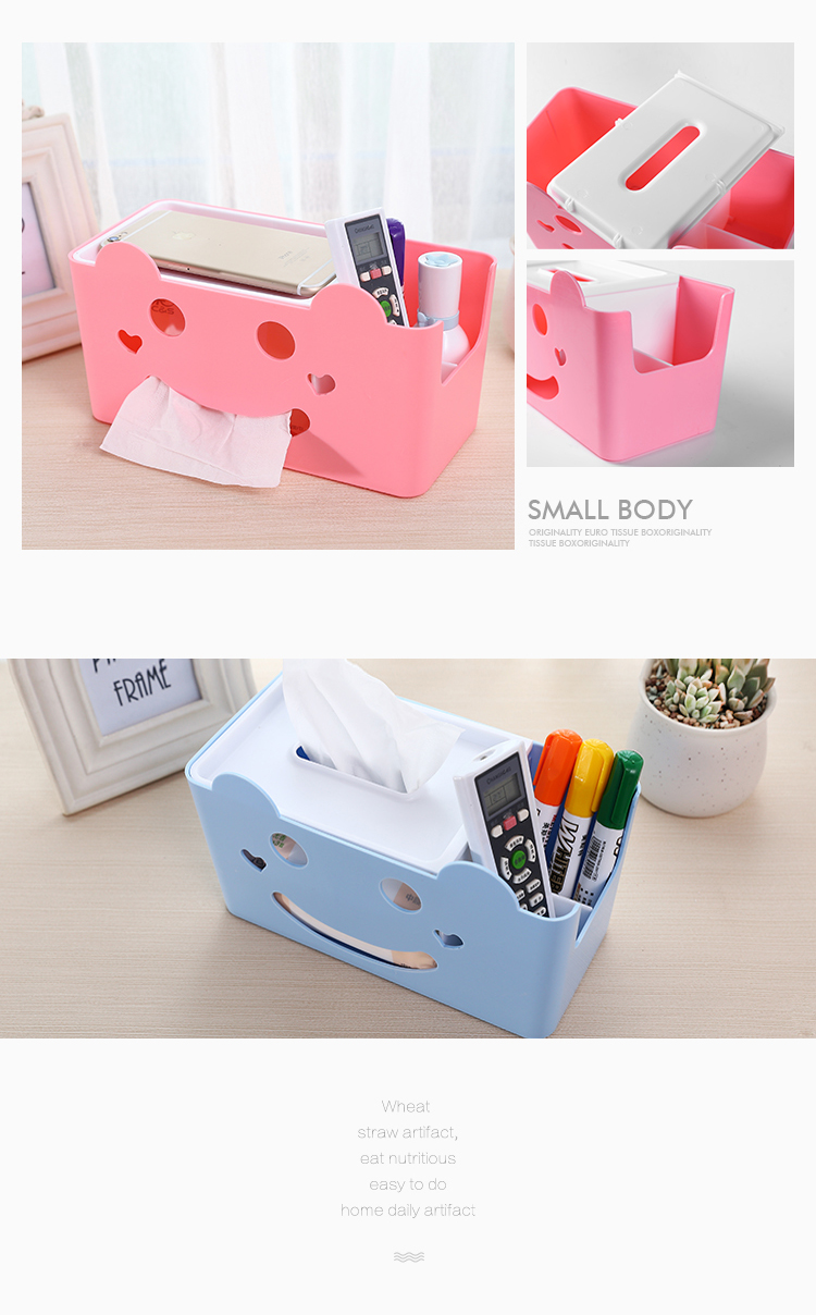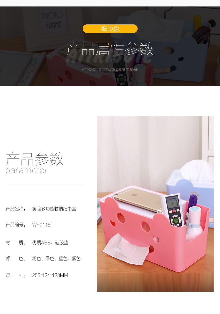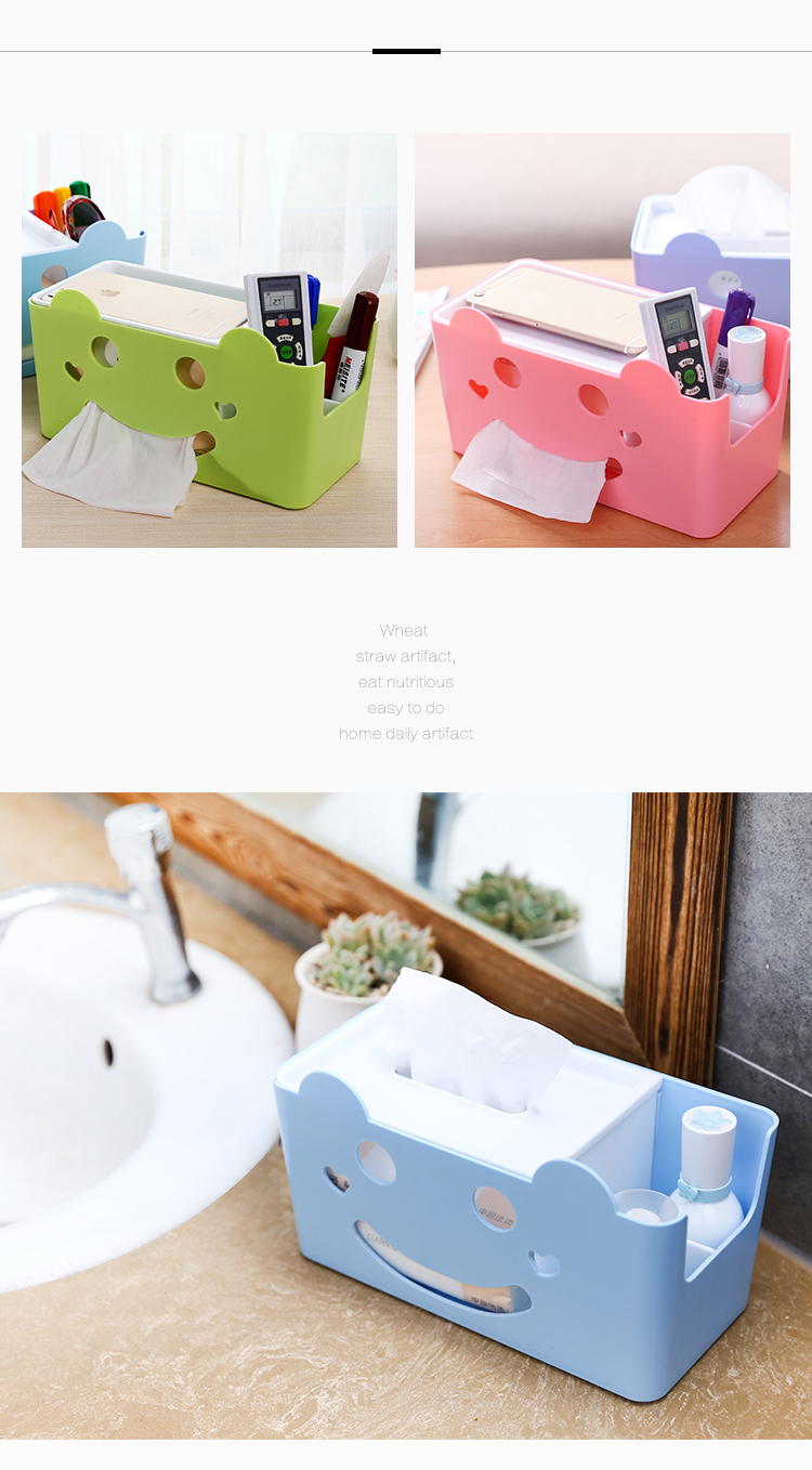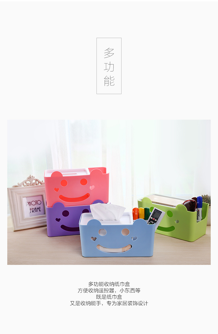 綠色創意笑臉多功能雙格桌面收納盒紙巾盒客廳空調遙控器抽紙盒