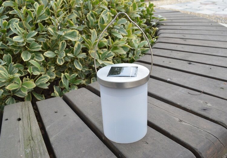 太陽能燈是靠其上面的太陽能電池片在白天的時候吸收太陽光轉化成電能儲存在燈內的充電電池內,等到晚上天黑時,頂部太陽能板會光敏感應,使燈亮起。 此價不含主圖S 型鐵支架哦! 使用方法:旋開燈頭,撥掉絕緣紙片開關,白天放在太陽光底下曬充電,晚上就會自動發光.標桿太陽底下充6小時,能亮6-8小時. 桶型掛燈技術參數為: 1.太陽能板2V/60MA 2.儲存電電池:1.2V AAA NI-MH 600Mah可更換! 3.一顆LED 正白光/七彩變化光/暖黃光 燈光可選顏色分為:白光,暖黃光,七彩光紅綠藍為主色交替慢速變換,交替的過程中產生短暫的別的顏色 4.產品高度:12厘米x頂部直徑:9厘米 總高度23CM 5.材質:頂部不銹鋼,筒身是塑料,筒身底部是通的 6.產品包裝:白盒包裝英文說明書 7.產品重量:195g 白盒尺寸:LXWXH:10X10X13CM 8.箱體尺寸: 48只/箱 LXWXH:
