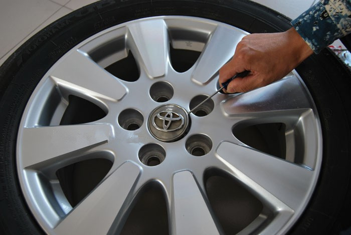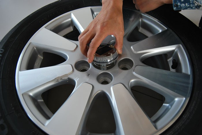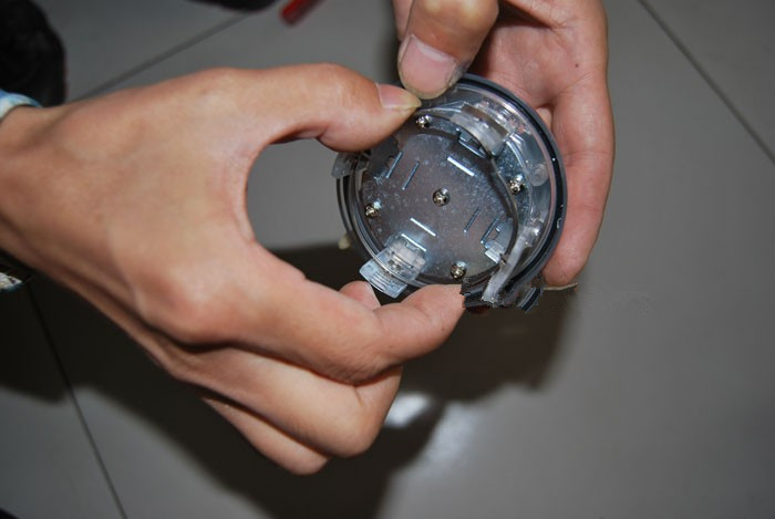 注意事項: 1.使用前請在陽光下充電3小時以上; 2.經常清理產品外部,保持表面整潔,以保證產品正常工作; 3.請擰緊各個螺絲,牢固安裝產品,以免產品在輪子高速轉動時不會脫落。 安裝說明: 1.用小一字螺絲刀把原輪轂車標取出; 2.用卡尺或普通測量工具測量出原車標的卡腳直徑數值 3.用螺絲刀將本產品的卡腳直徑定位螺絲松開; 4.按照原先測量的卡腳直徑數值調節好所需要的直徑,四個腳位需要同時調節,保持產品的四個腳位中心對稱,調節完成后擰緊螺絲; 5.用卡尺或普通測量工具測量出原車標的卡腳高度數值 6.按照原先測量出的卡腳高度數值安裝定位扣,四個定位扣保持高度一致 7.將卡簧卡在四個腳位的內側卡扣兩腳中間位置,以保證其腳位彈性; 8.將產品壓進輪轂原車標位; 9.遮住光線,長按開關3秒開啟產品,整個安裝完成了。