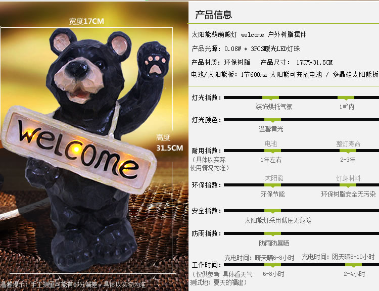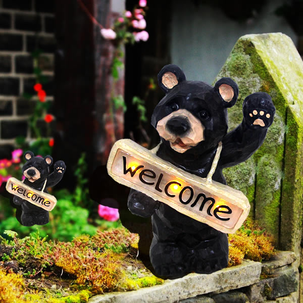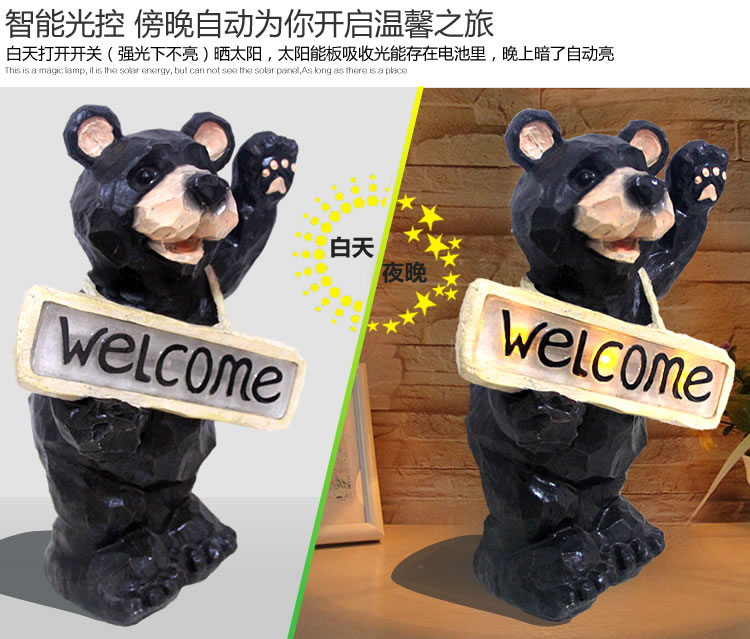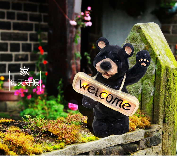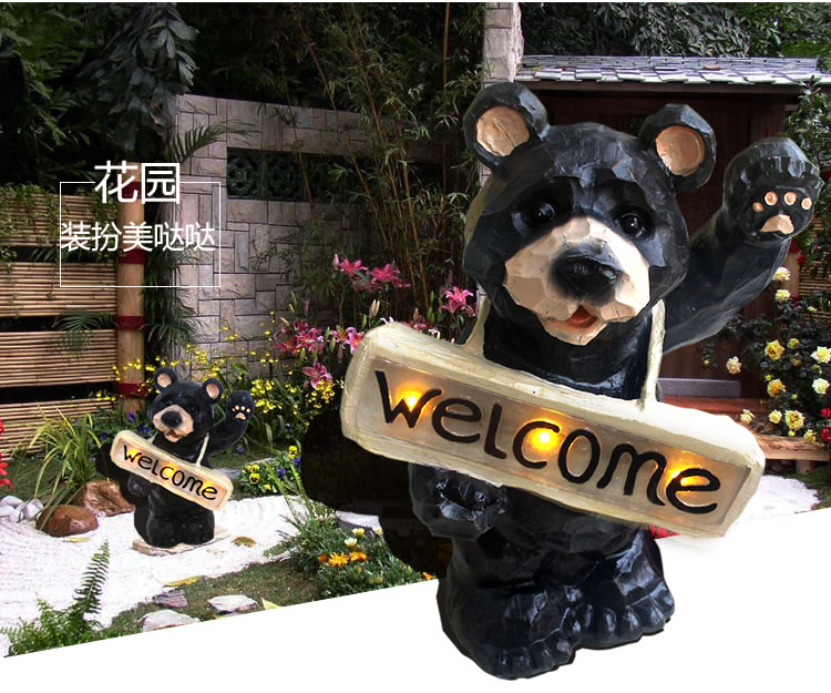 圣誕可愛熊熊朗發戶外擺件熊熊太陽能燈創意禮物花園別墅露臺裝飾LED庭院燈