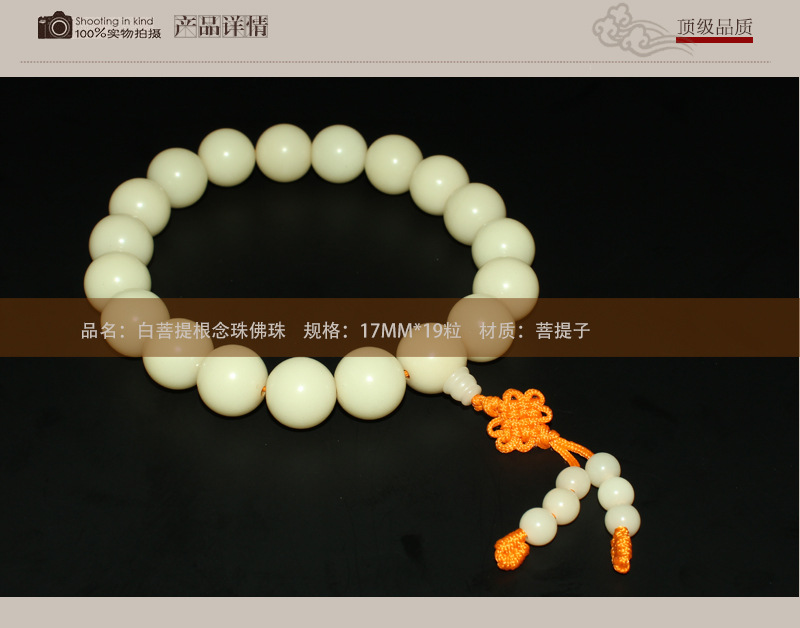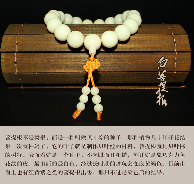 果一次就掛了,它的葉子就是制作貝葉經的材料,菩提根就是貝葉棕的 樹籽,表面看就是一個種子,不起眼而且粗糙,剖開就是象巧克力色花 紋的皮,里面的是白色,經過長時期的盤玩會變成黃褐色。 根外層是有表皮的,像薄樹皮,米色,上有微微隆起的花紋。去掉這 層皮是花褐色的內皮,即花菩提根也叫花冠菩提根。珠子呈圓形,做工 精細,每顆都非常圓潤并富有光澤。其外觀精美,干凈清爽,質地堅硬 ,顏色歷久不變,且越用越光澤。對事業的騰飛和對家庭的和睦有幫助 ,還可以增加財運,增廣智慧,是收藏的上品。菩提根佛珠是常見的, 因為佛經說,以菩提佛珠持誦,可獲無數功德,故善男信女多用之。 菩提子把玩方法 僅可以去除生澀性,同時還能起到拋光的作用,使其表面更加光澤,手 感更加舒適。 接觸,形成細密均勻的氧化保護層。 手直接盤,在盤的過程中注意籽的孔口周圍也一定要盤到。 面已經形成了一層薄薄的包漿,這時就可以再放置一周左右的時間,讓 其自然干燥,同時也能讓包漿均勻的和空氣接觸,得到一定程度的硬化 ,從而恢復潤澤的手感,如此反復大約三個月左右的時間以后,籽的表 面會形成一層穩定厚實的包漿,并呈現出瓷釉般的光澤,靈氣十足,另 人嘆服。 后裝進自封袋里放置一段時間再上手就好了。盤籽忌的就是急功近利, 一定要循序漸進,慢慢感受其中的變化,體會其中的滋味。盤的是籽,磨 的是心。 |