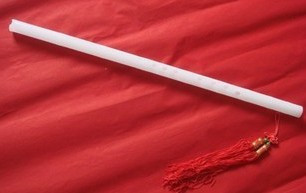 玉笛子,. 屬于技術創新型產品,成品率很低。音質不能和專業笛子相比,自愉自樂還是可以的,尤其是這么一根潔白無暇的美玉,掛在屋里,除了美化裝飾作用外,自有一種悠閑恬靜的意境。