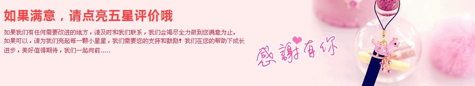 如果您意請告訴您身邊的人 每一次購物過程都是一個美好的開始。親,如果您收到我們的商品感到意,請在我們的留言區寫上您的心得甚至秀一下您的佩戴效果,將這份美好分享給其他和你一樣喜歡我們商品的買家朋友。 如果您不意請告訴我們 不論什么原因讓您不意的,我們表示萬分的遺憾和歉意。但是請您千萬不要著急,也不要急著對我們進行評價,請第一時間聯系我們的客服以或客服。我們會妥善為您處理,請您在我們處理后給予我們客觀的評價。 |
