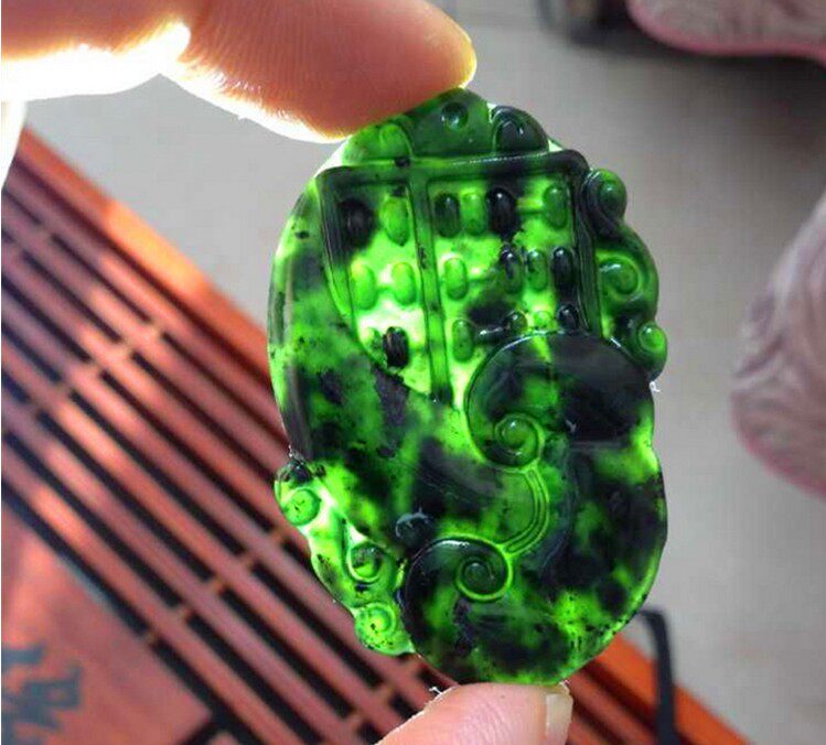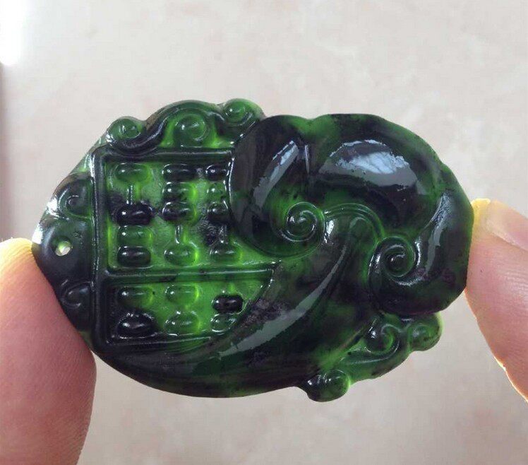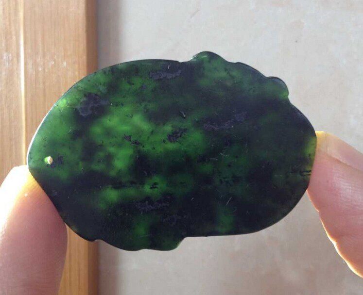【寶貝尺寸】大約55mm*32mm 【商品介紹】:墨綠玉又名“黑綠玉”或“西峽碧玉”,是一種蝕變的蛇紋石化超基性巖。墨綠玉既有其它玉石的共性,又有其本身的特性,是唯一的功能玉。該玉具有雙向調節的神奇功效.長期用功能玉處理的水洗臉、手、腳、澡能使皮膚光滑細嫩,富有光澤彈性,祛皺附斑、重返青春,甚至還會有肥的驚喜。功能玉中富含有的鋅、銅、硒、鍶等 素,對頭發有很好的保養作用。用之洗發可能防止頭皮發癢,去除頭皮屑,使頭發烏黑柔順。另外用功能玉神茶水洗眼對老花眼有良好作用。