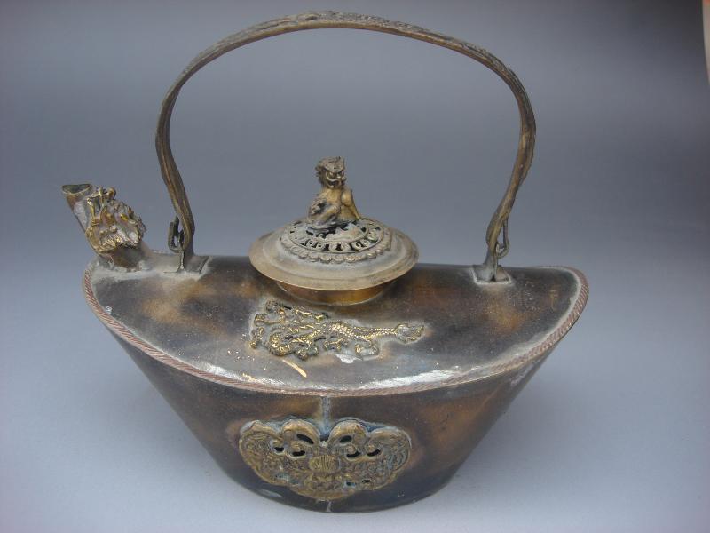 古玩純銅器開光龍鳳酒壺茶壺寶壺純手工 招財納福工藝品擺件
