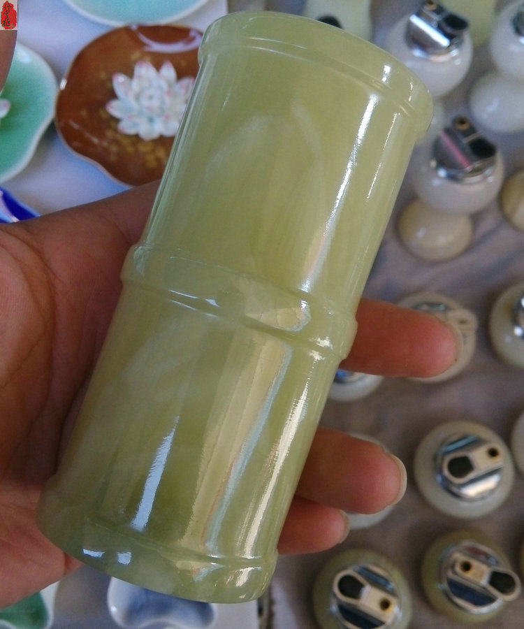 正品玉石筆筒天然阿富汗玉擺件把件高檔精美a貨玉筆筒玉竹筒批發
