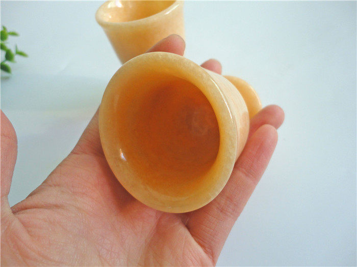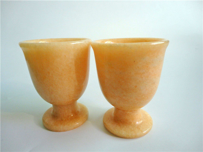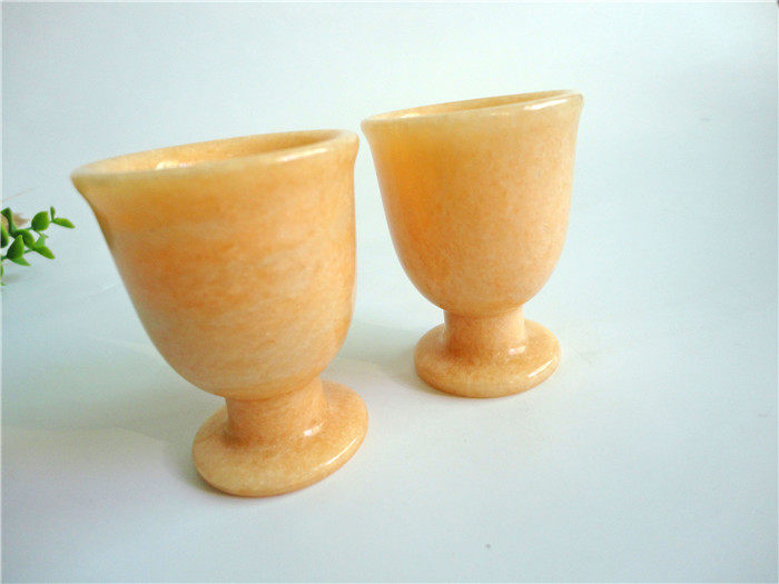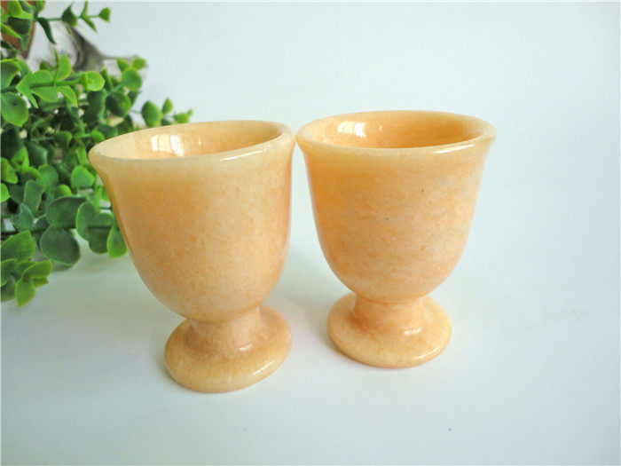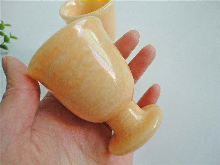 正品天然米黃玉晚霞紅酒杯茶杯高腳杯擺件黃玉家庭保健飾品