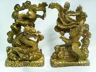 龍鳳一對開光純銅龍鳳呈祥 百年好合新婚送禮佳品 工藝禮品銅器擺件