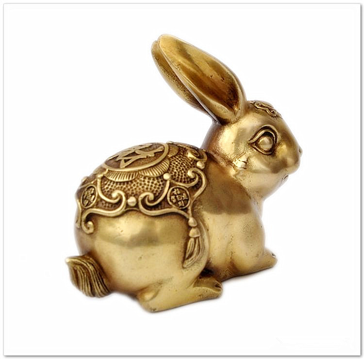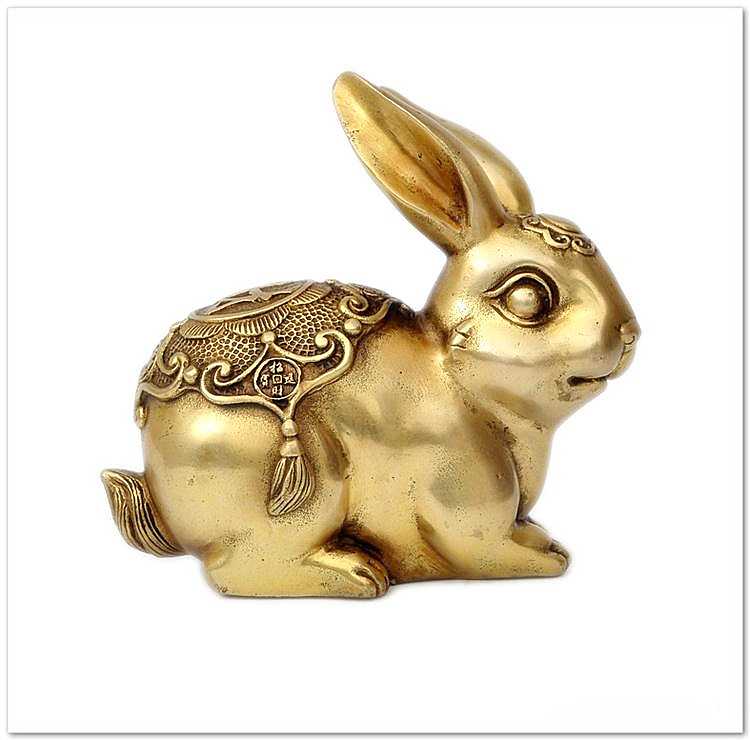 福兔開光純銅財福兔子擺件銅兔可愛生肖兔純銅兔子擺件吉祥物禮品/對