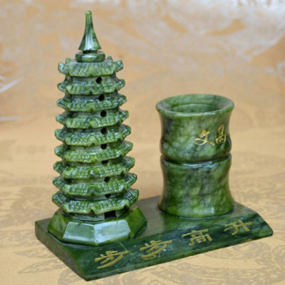 黃玉高15.5cm南玉筆筒文昌塔米黃玉筆筒文昌塔九層9層擺件旺文益智助考