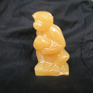 開光天然米黃玉生肖猴 吉猴抱桃吉祥擺件 護身 屬蛇吉祥