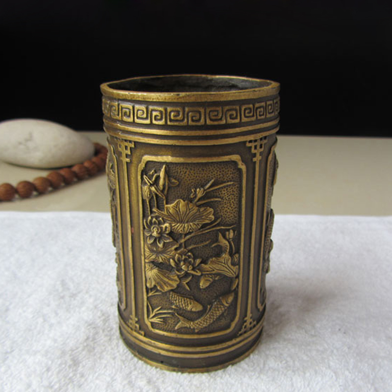 純銅筆筒魚筆筒 年年有余書房仿古文房四寶旺文益智擺件