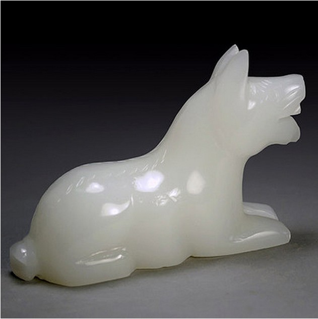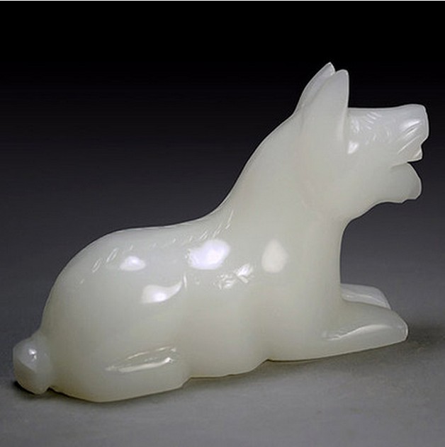 純天然玉石開光A級白玉阿富汗白玉十二生肖狗擺件生日禮物