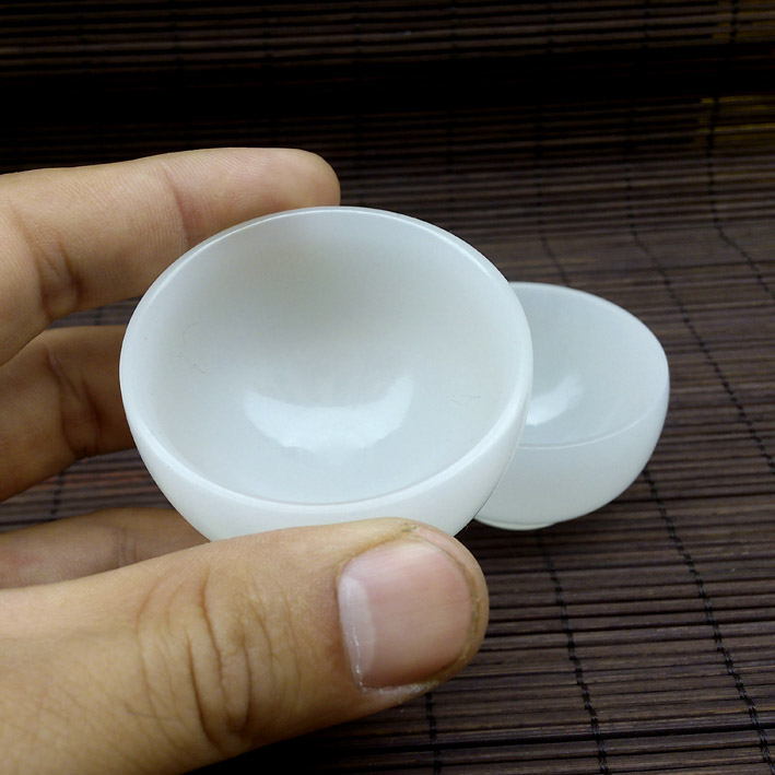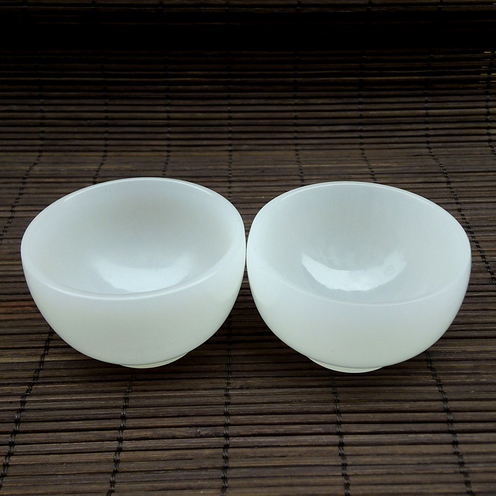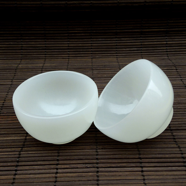 兩只阿富汗白玉茶具批發 天然玉石白玉仿古茶杯擺件 白玉酒杯