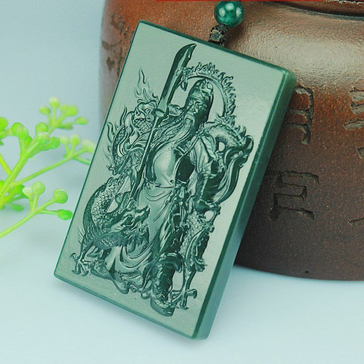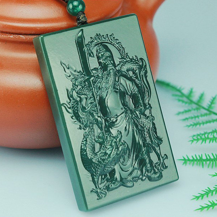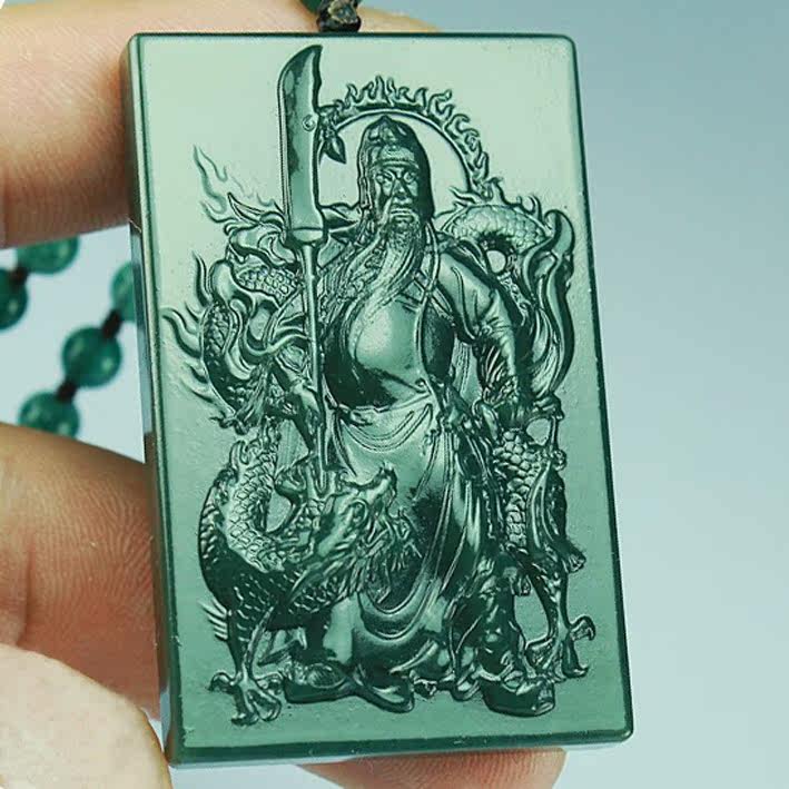 天然和田玉青玉祥龍關公玉牌降龍武財神關公玉佩吊墜 附證書