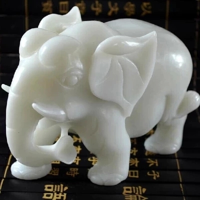 8厘米一對阿富汗白玉象風水擺件一對 聚財吸水大象玉如意白象擺件特價