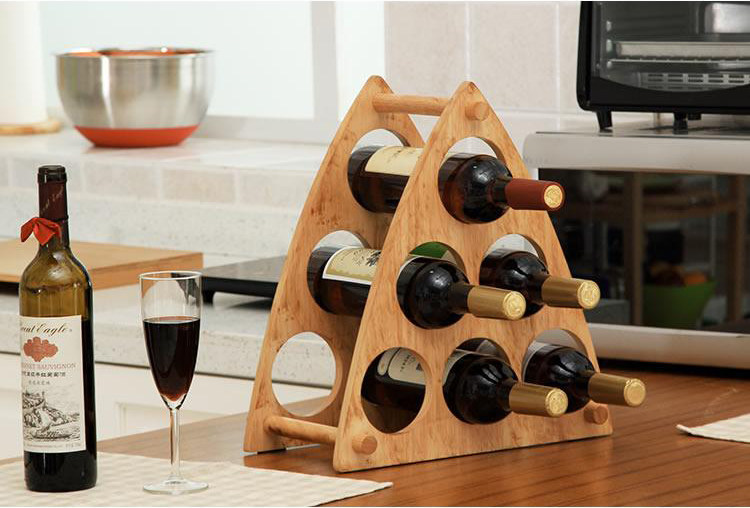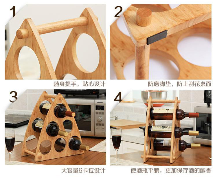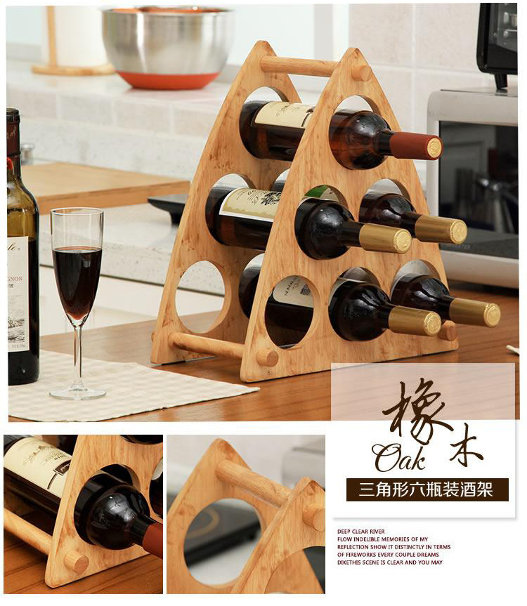 橡膠木6支裝酒架 包郵橡膠木六瓶裝酒架三角形紅酒架葡萄酒架歐式吧臺木制時尚創意擺件