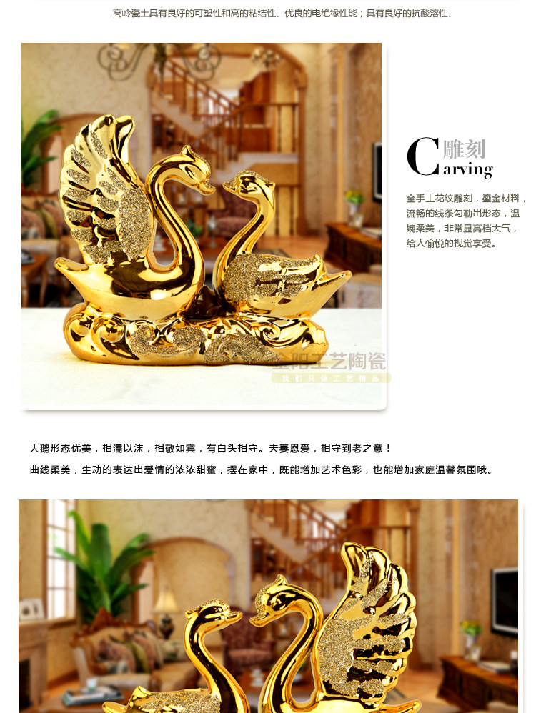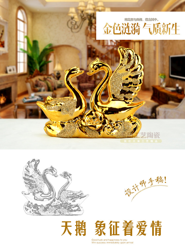 歐式家居飾品擺設陶瓷擺件臥室電視柜情侶小天鵝擺件結婚禮物玄關