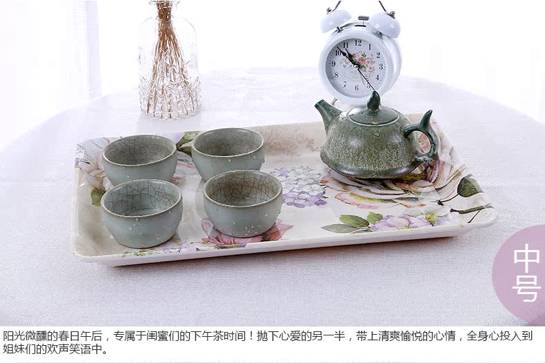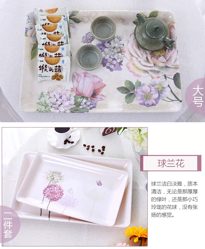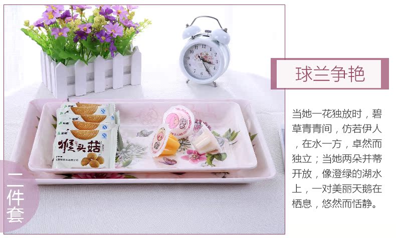 嬌艷玉蘭兩件套希爾 歐式水杯托盤套裝 長方形餐具塑料茶盤創意客廳水果盤零食盤