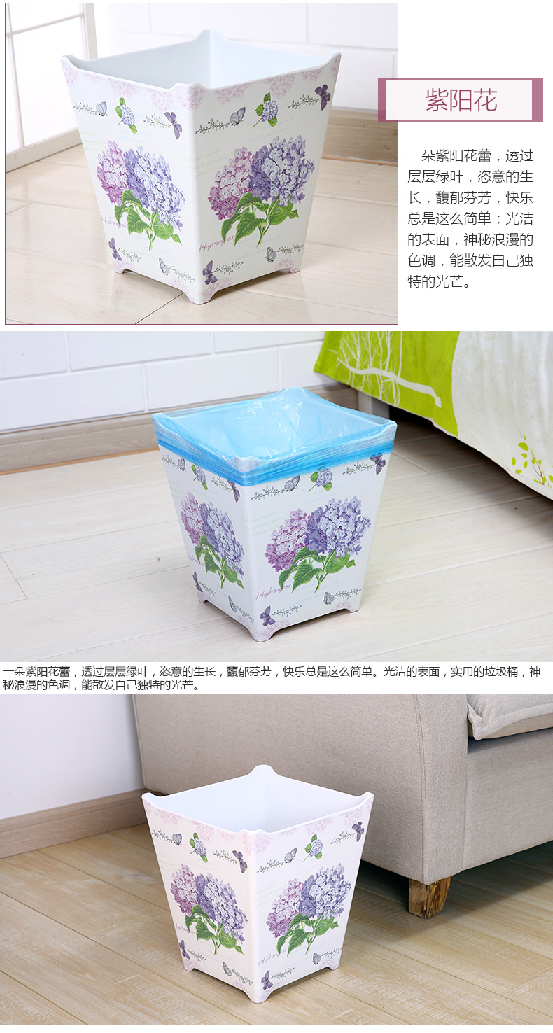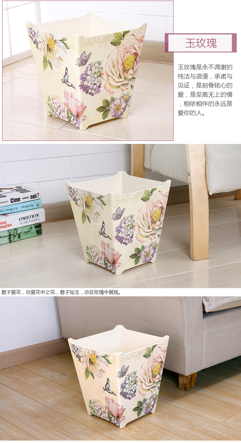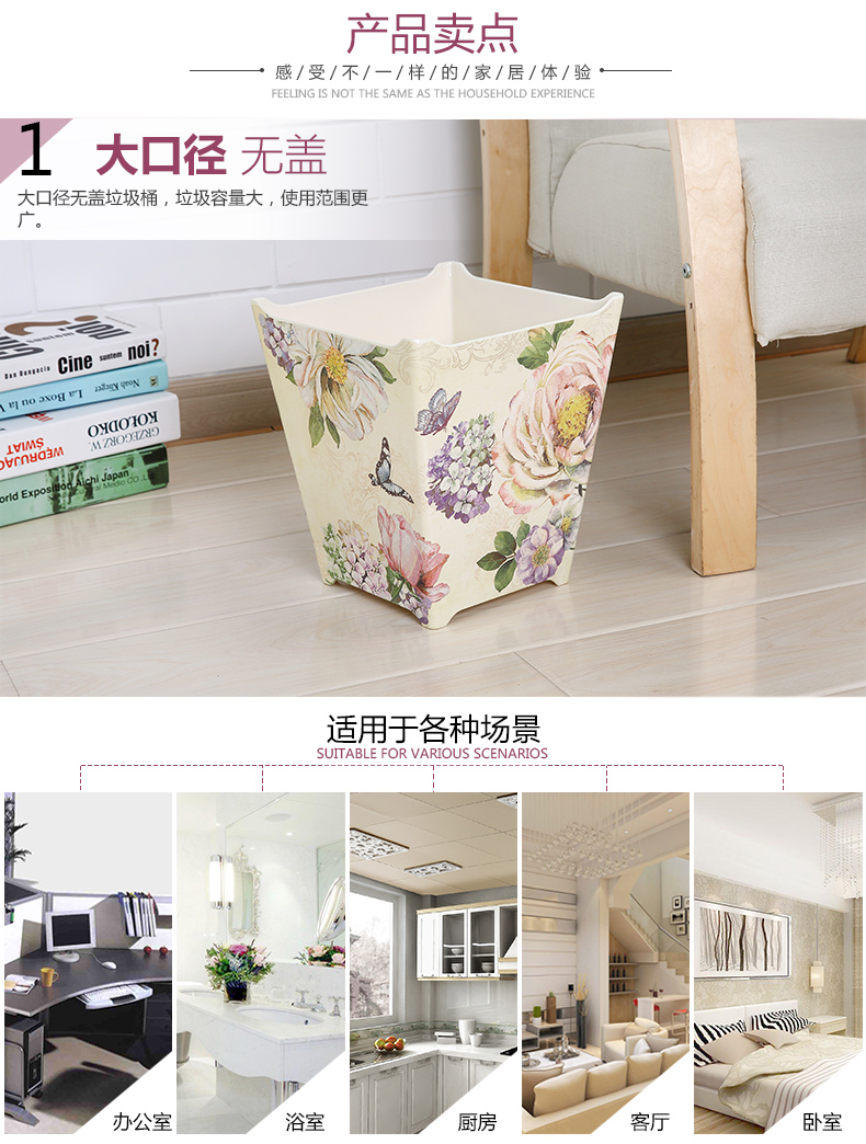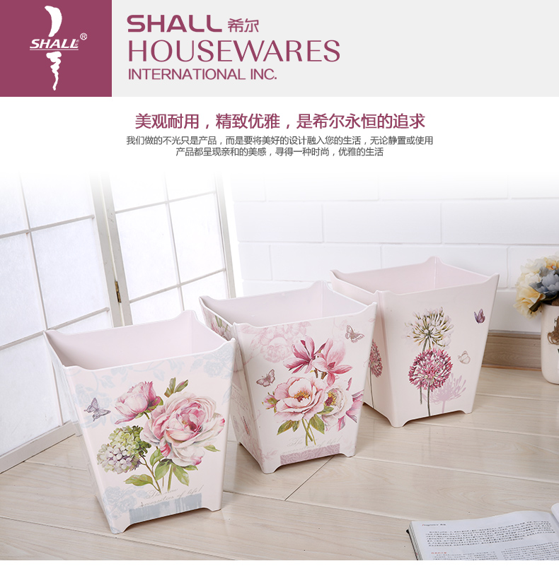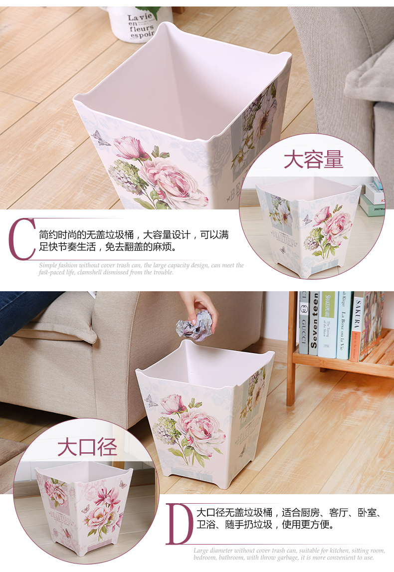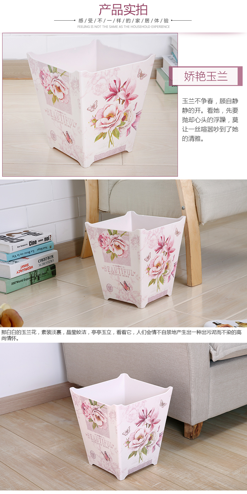 嬌艷玉蘭10L希爾無蓋方形垃圾桶 家用衛生間客廳廚房垃圾筒可愛塑料時尚創意