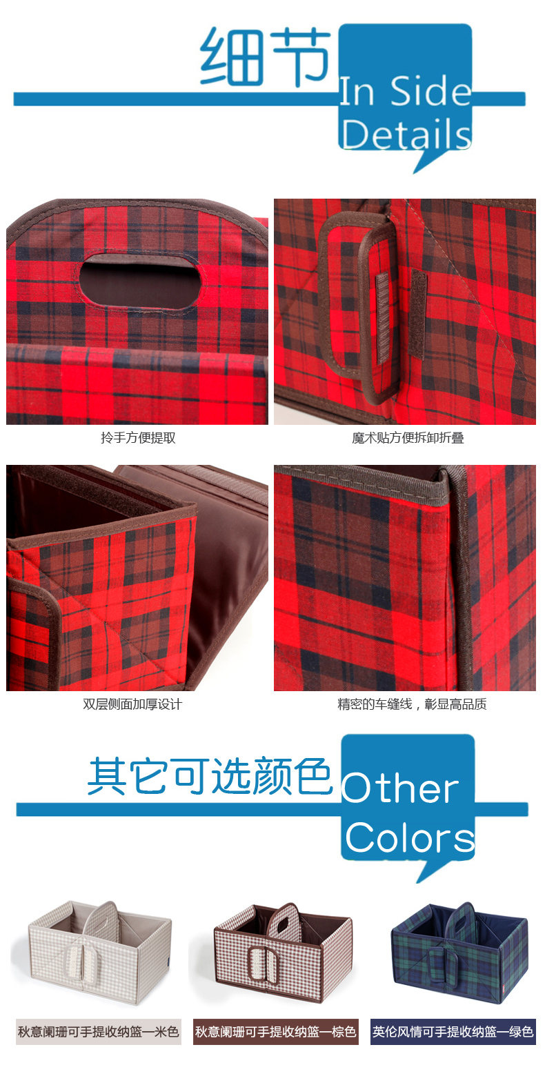 英倫風情 紅色宅美可折疊手提收納籃 大號布藝野餐籃多功能整理箱床底汽車置物