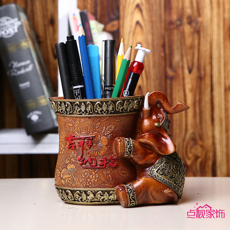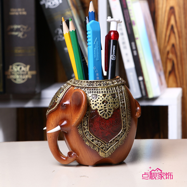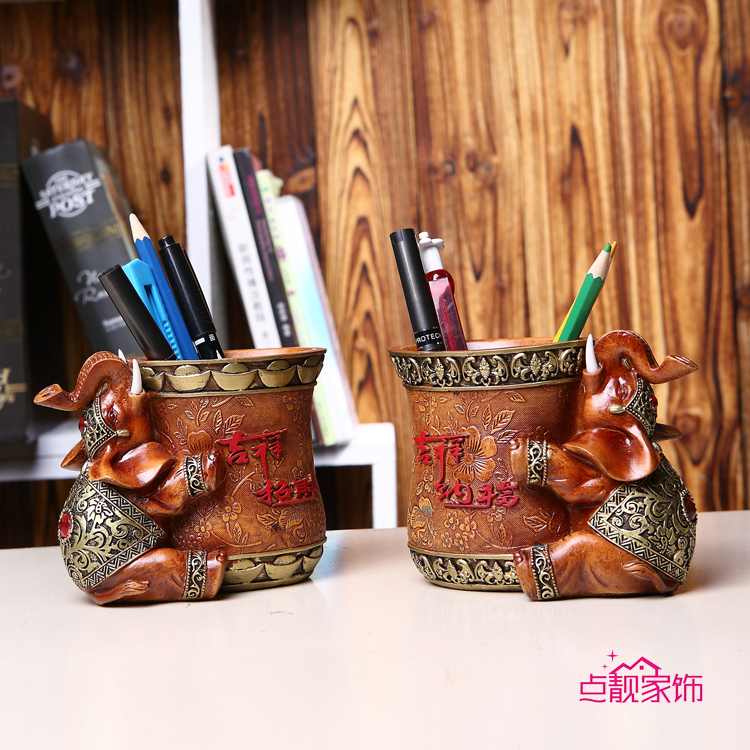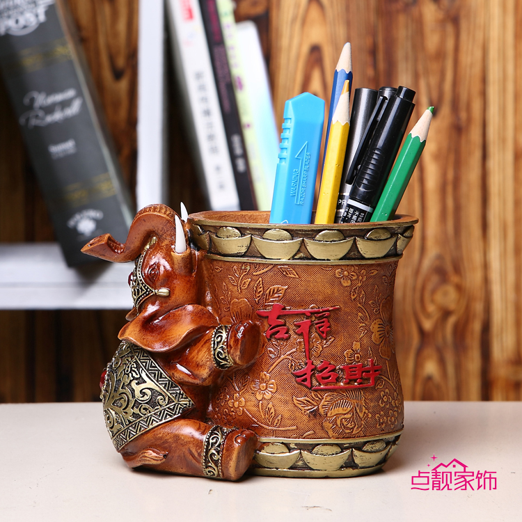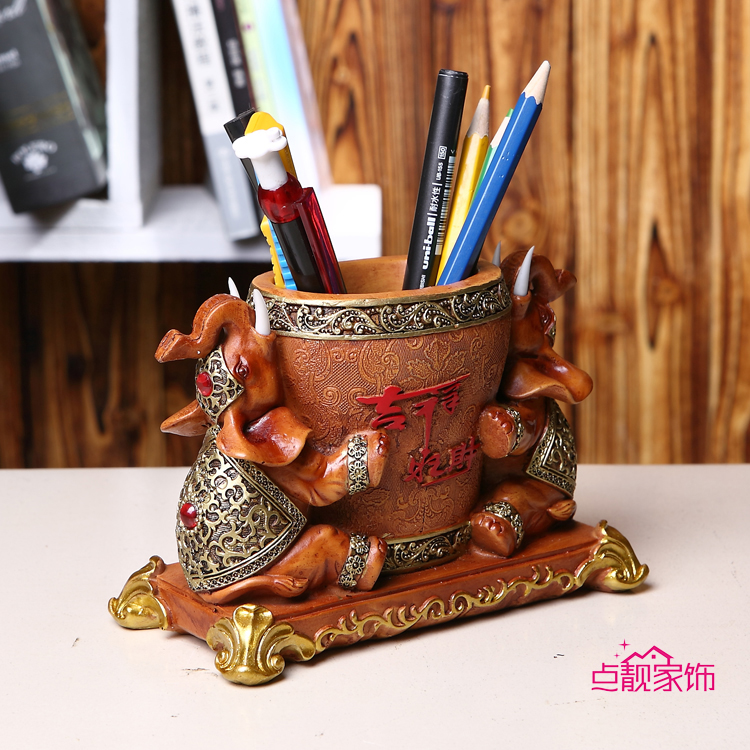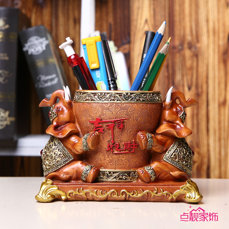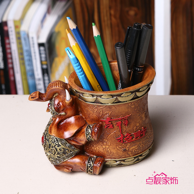 吉祥大象-04實用創意筆筒擺件吉祥大象辦公桌商務禮品送領導男友同學生日禮物