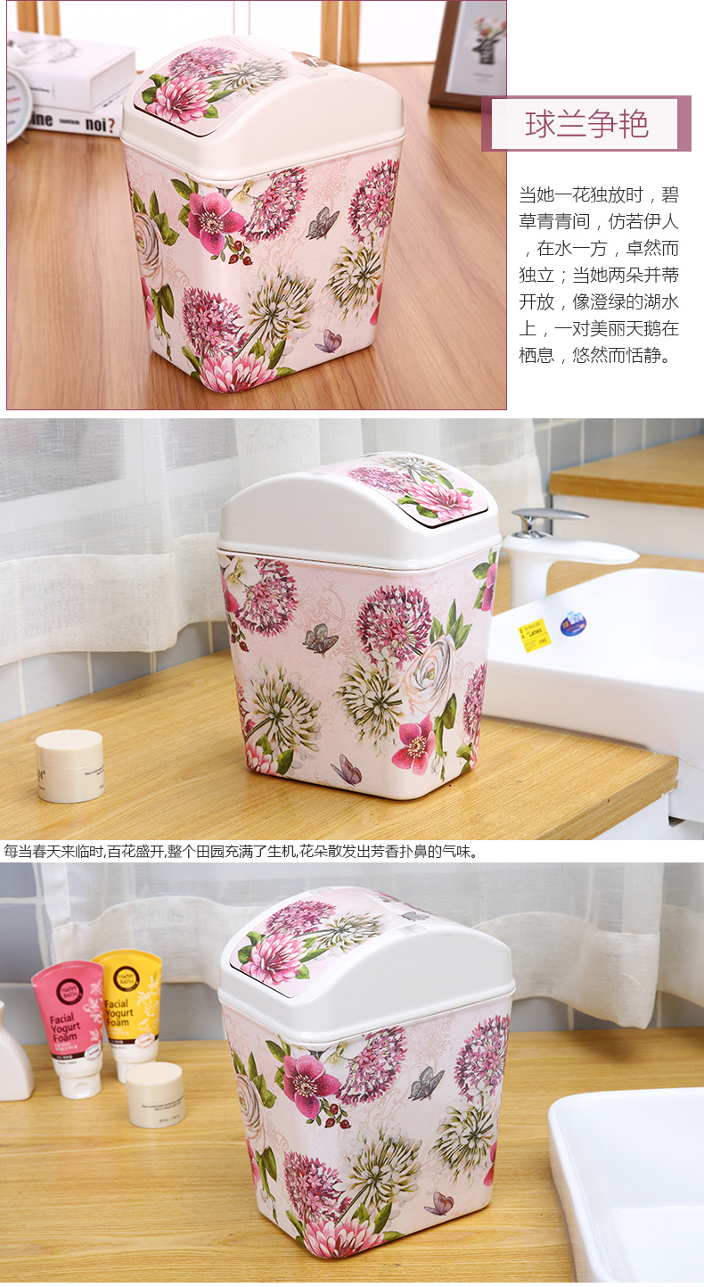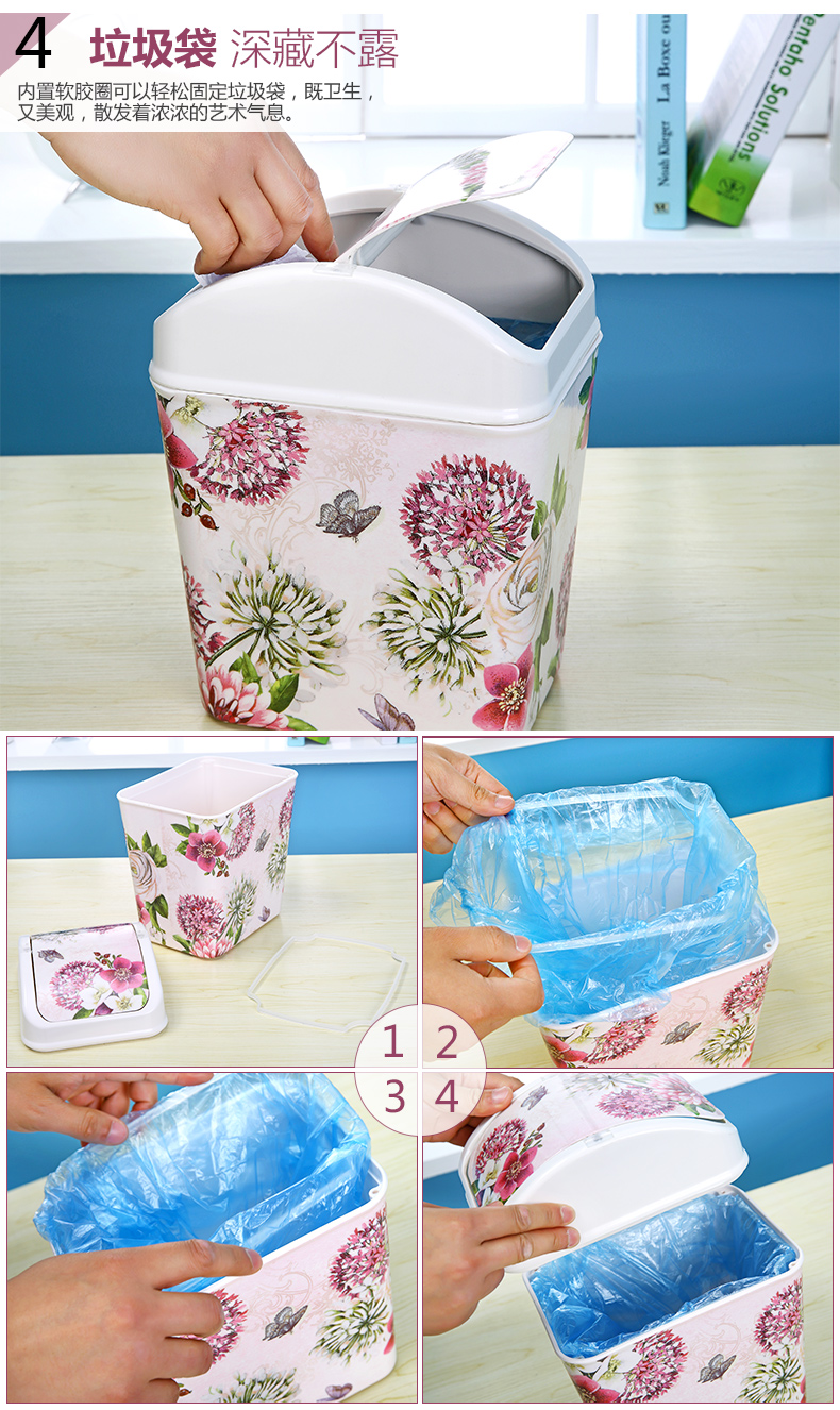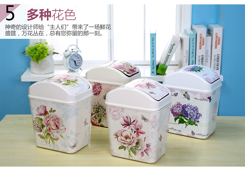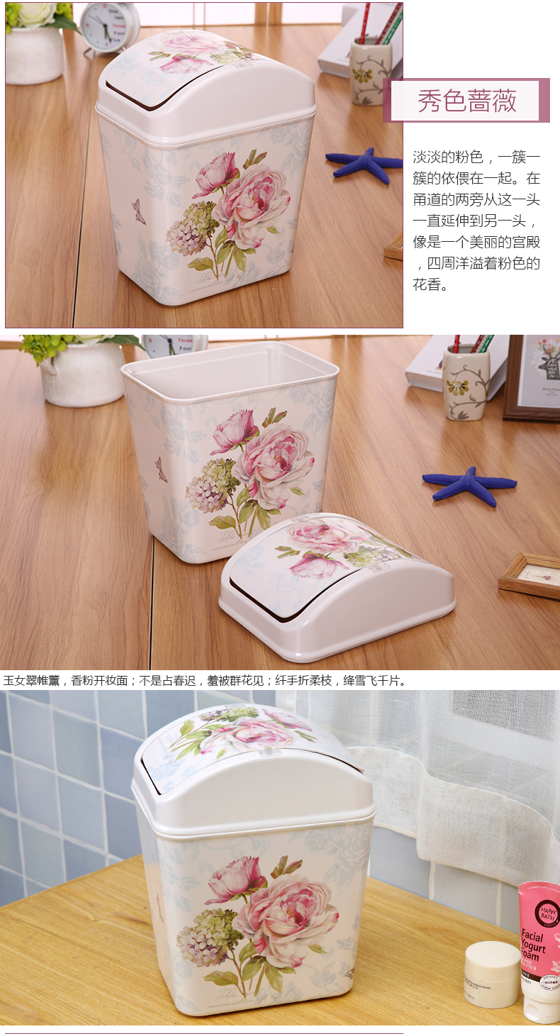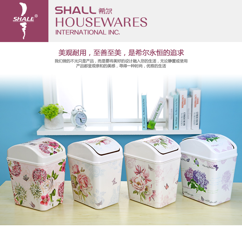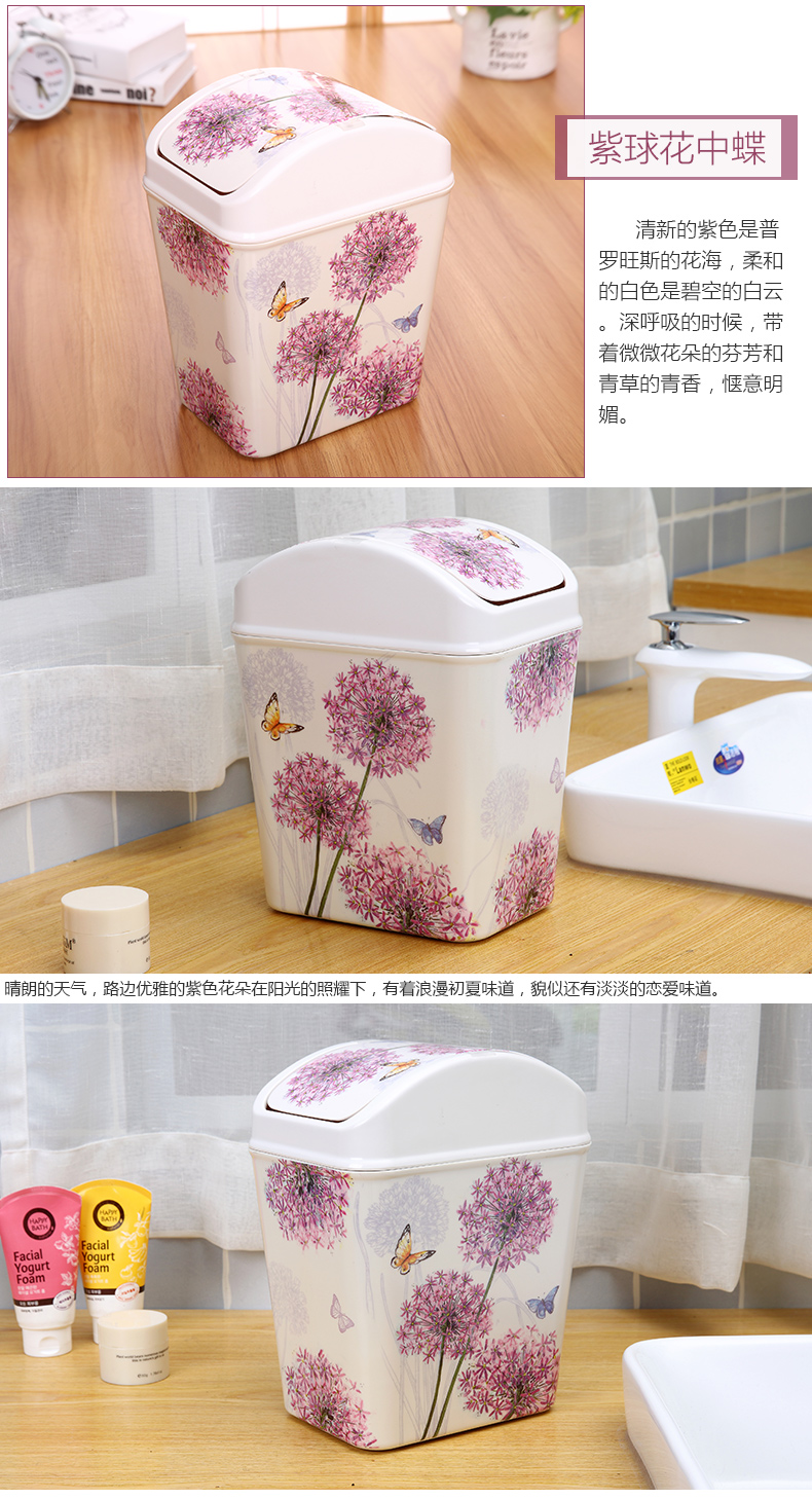 紫陽花希爾搖蓋垃圾桶 時尚創意垃圾筒歐式家用可愛客廳衛生間廁所廚房