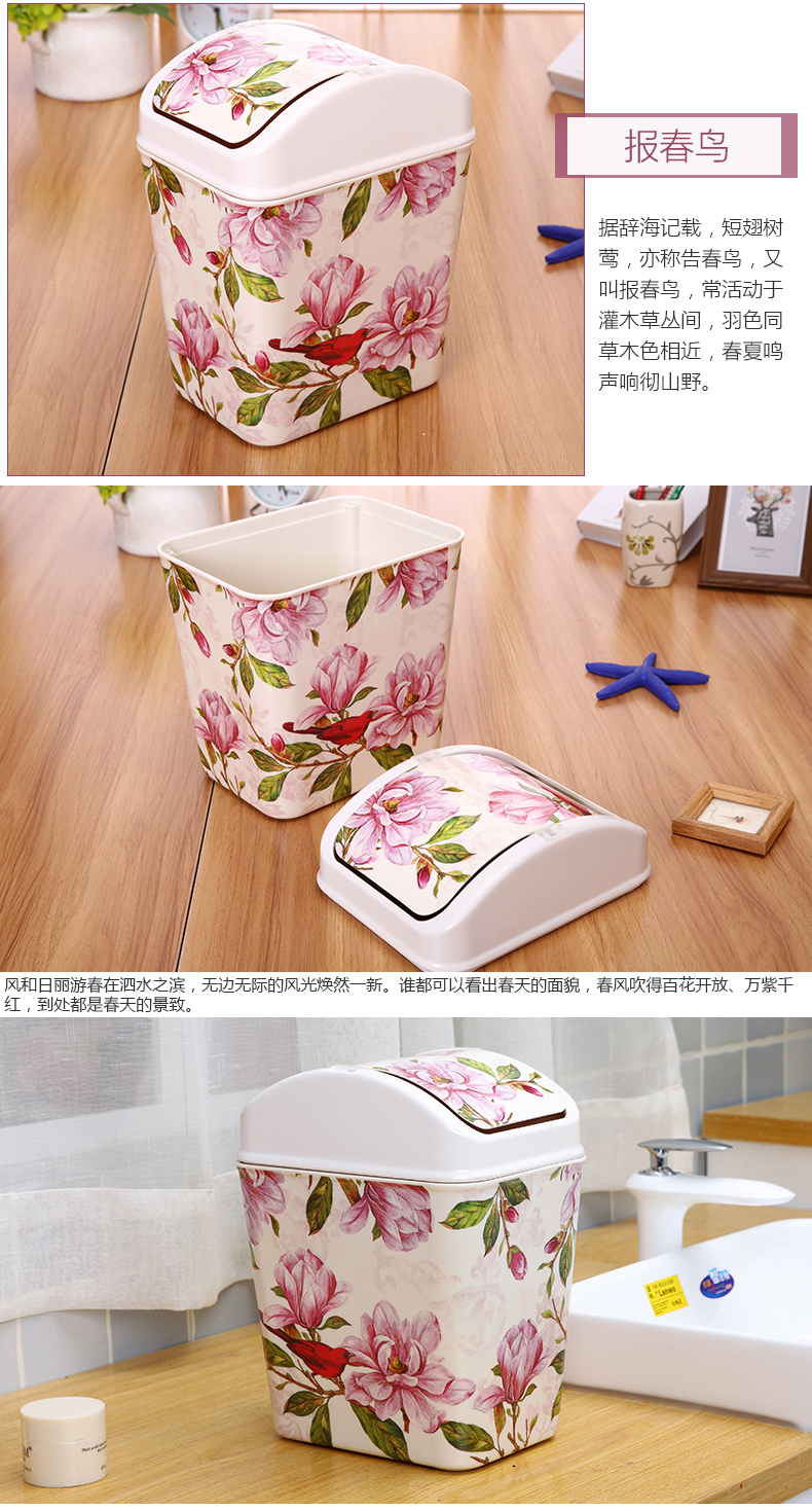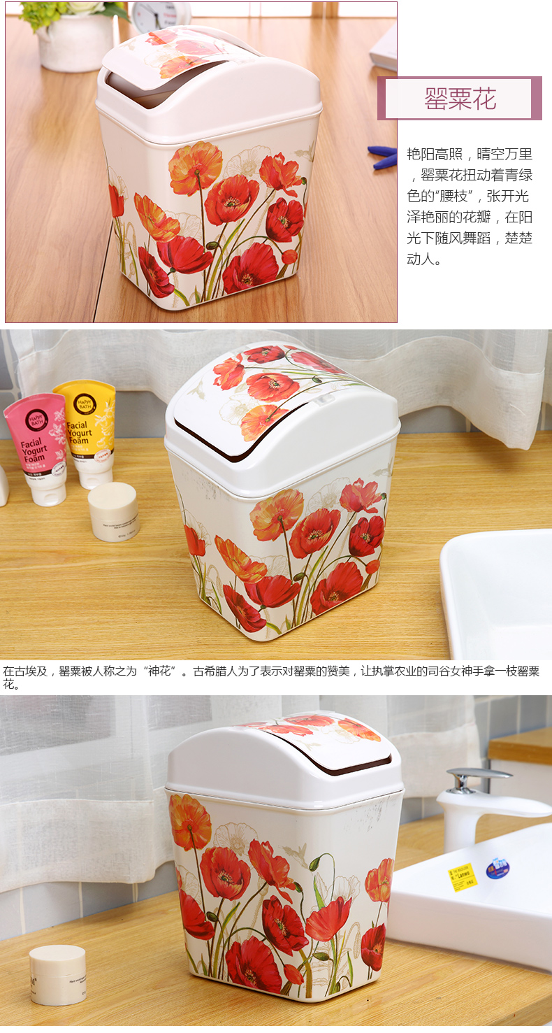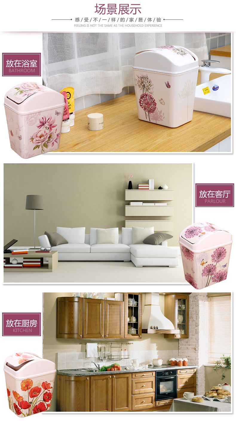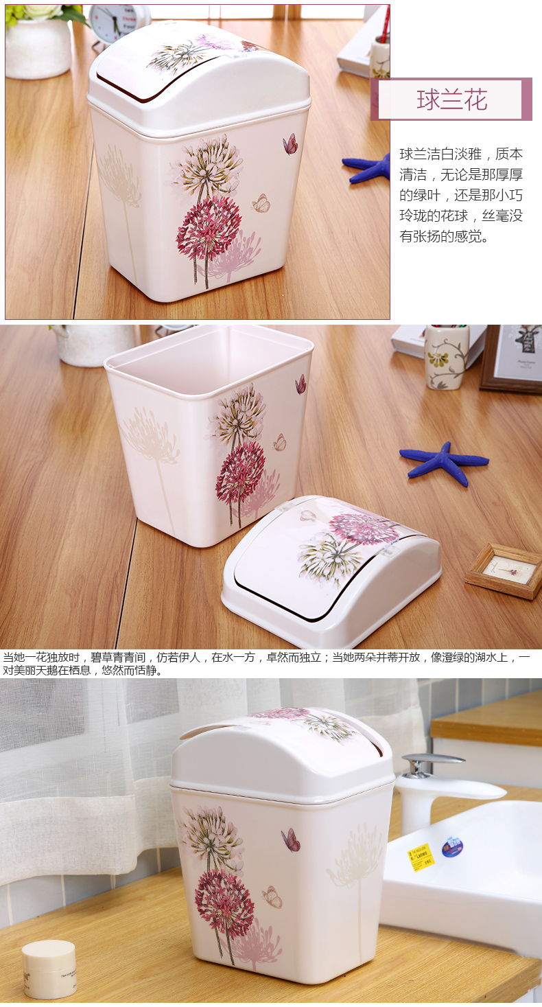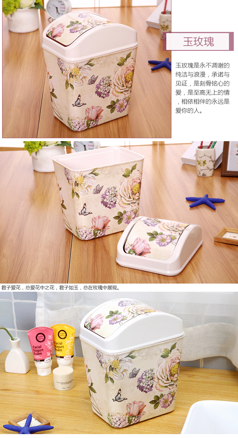 紫陽花希爾搖蓋垃圾桶 時尚創意垃圾筒歐式家用可愛客廳衛生間廁所廚房