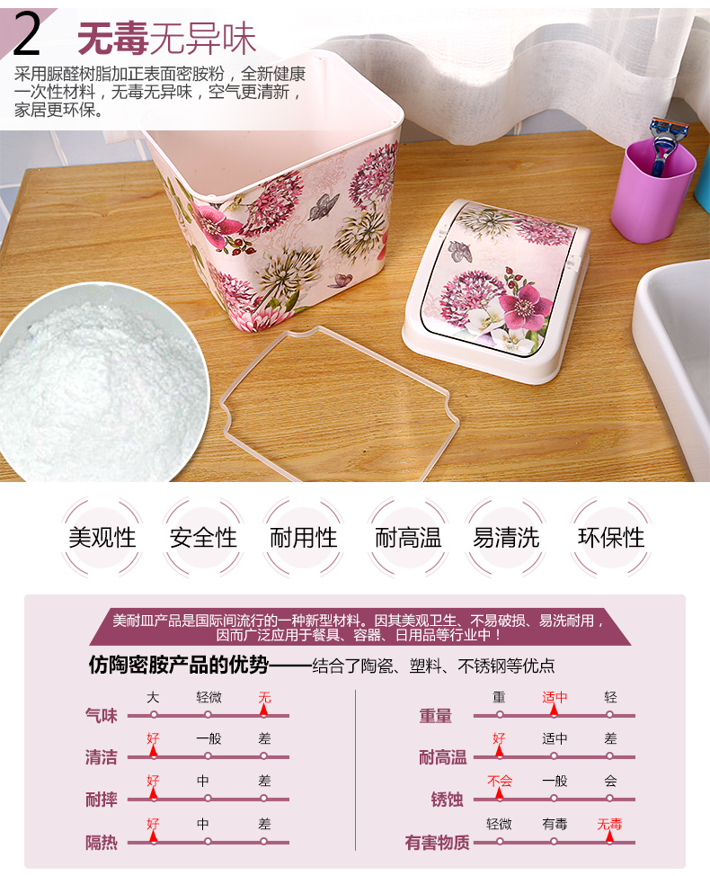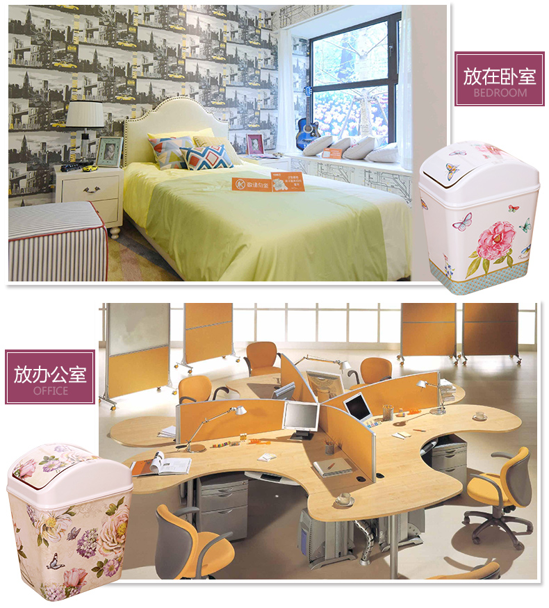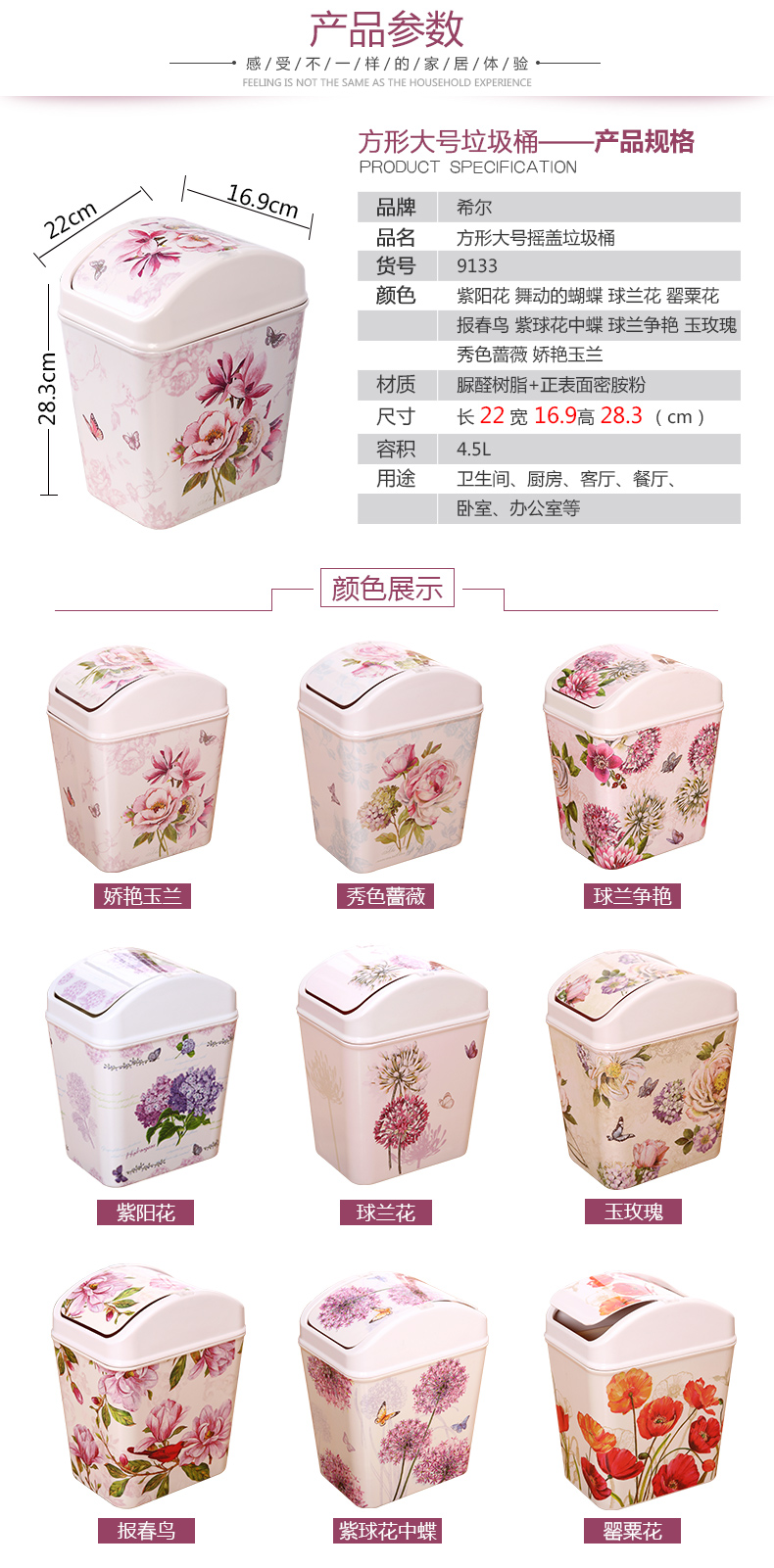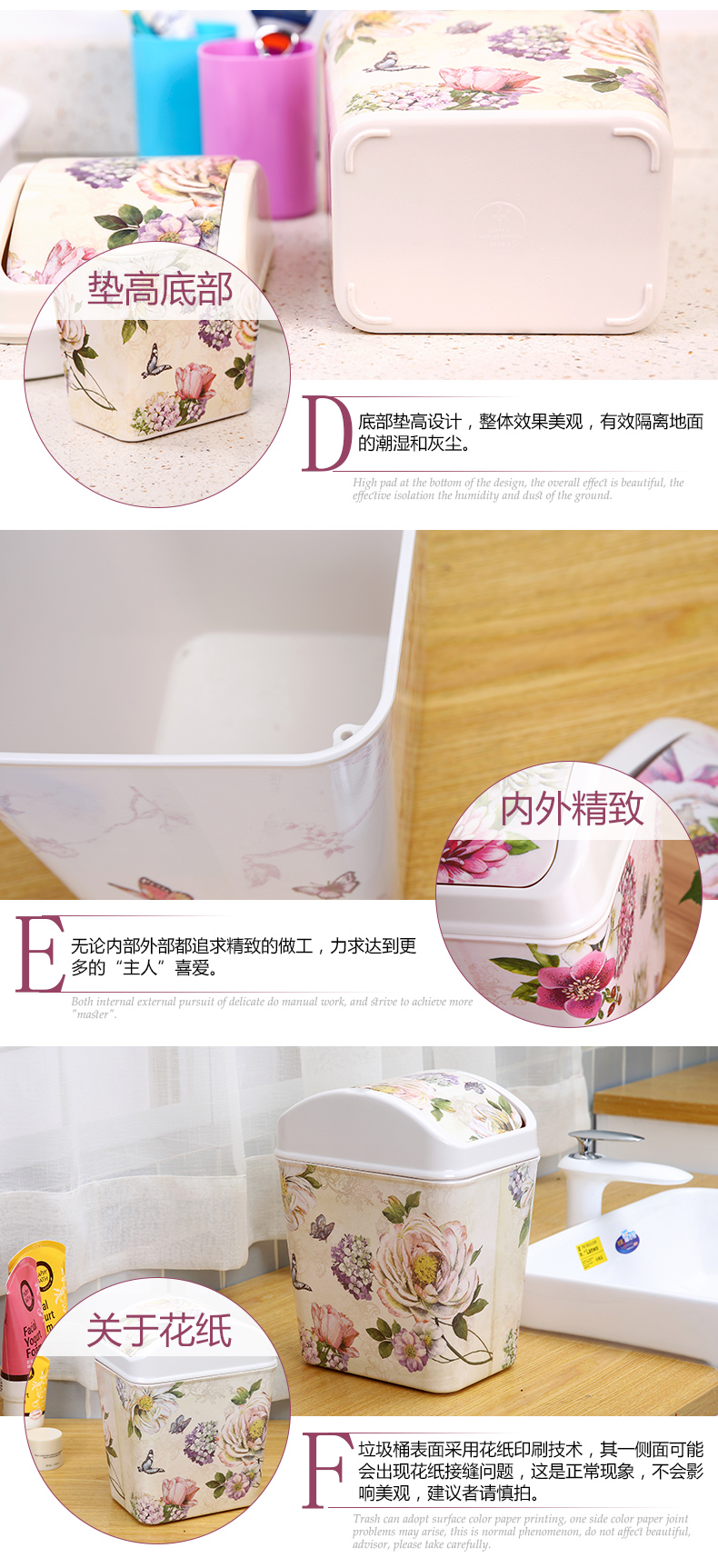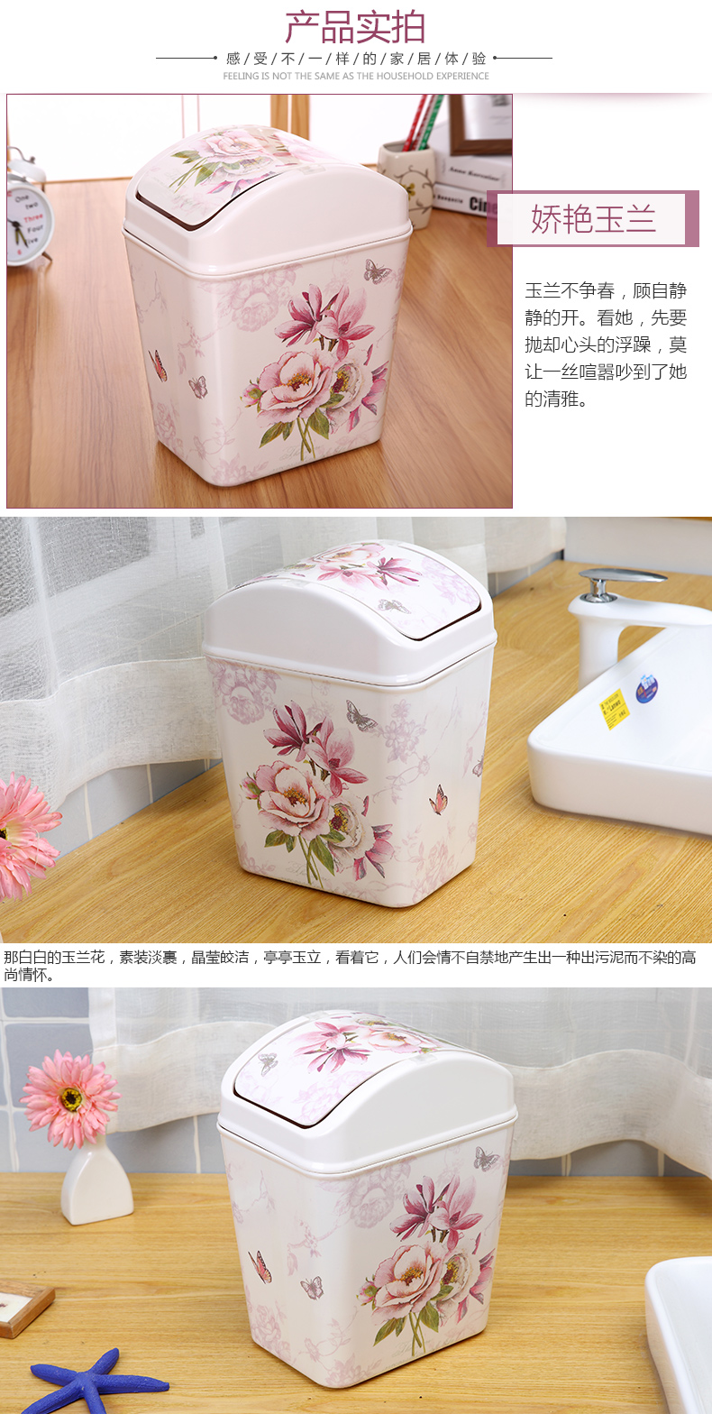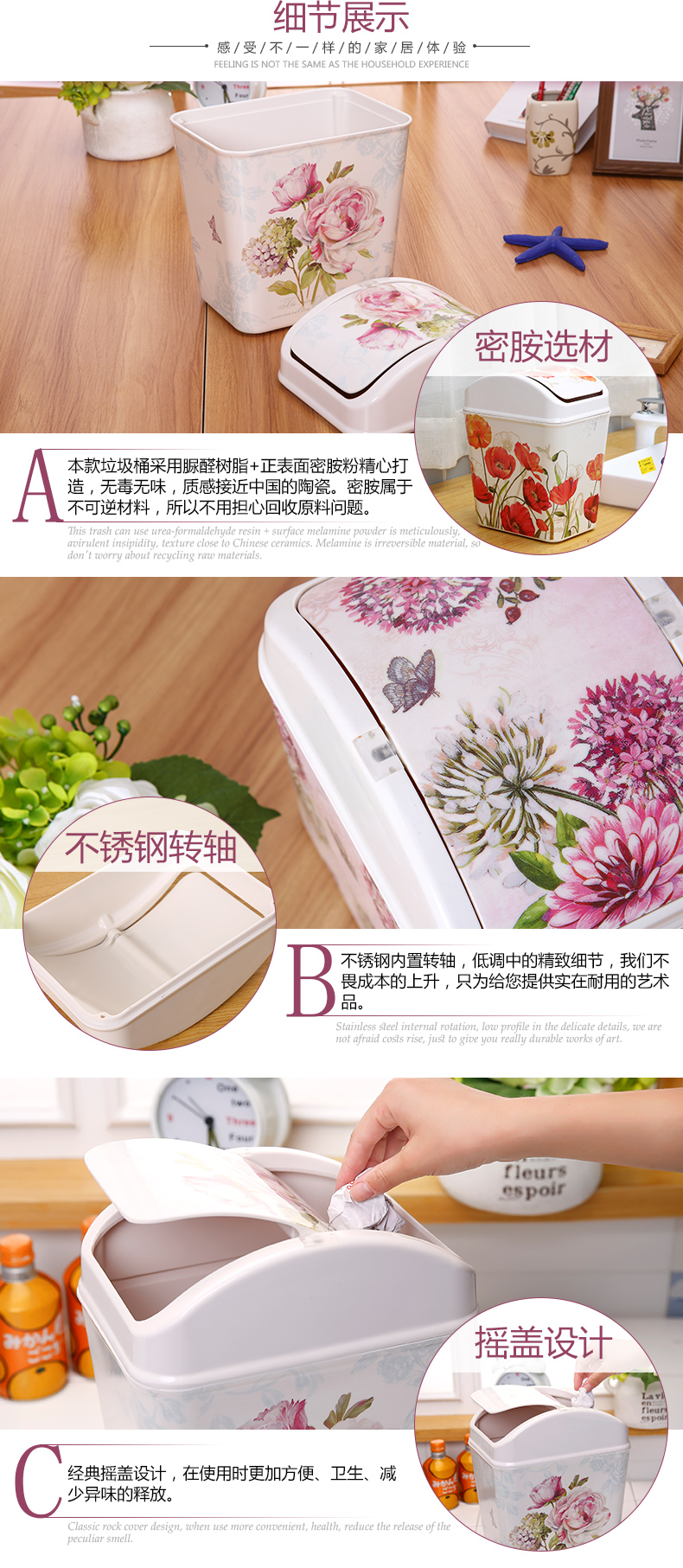 紫陽花希爾搖蓋垃圾桶 時尚創意垃圾筒歐式家用可愛客廳衛生間廁所廚房