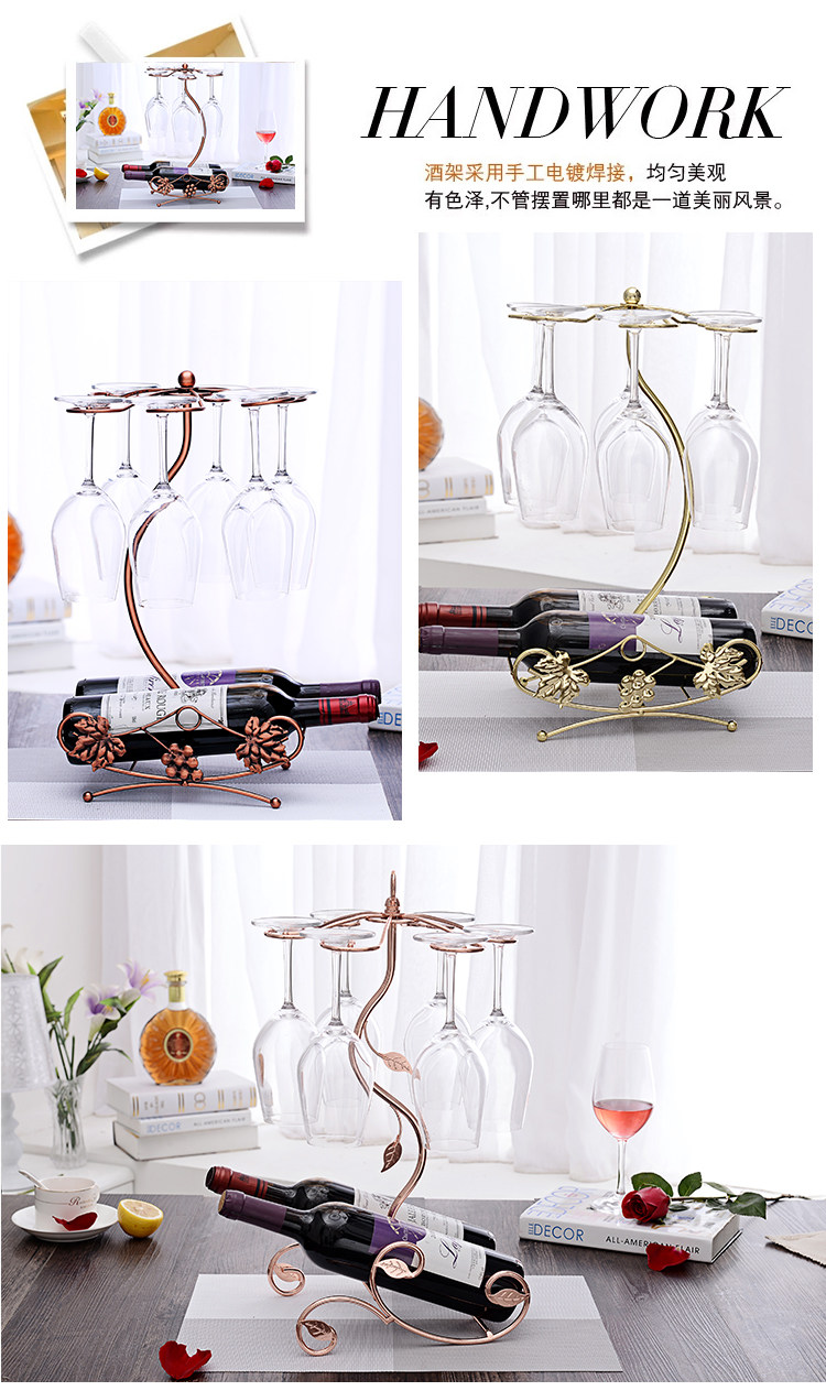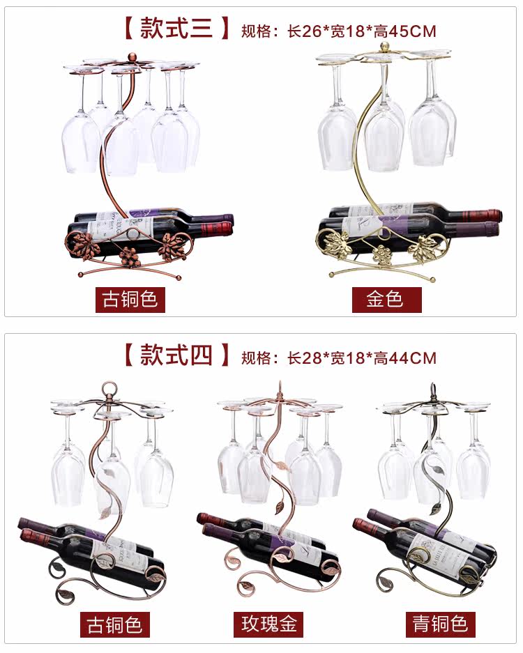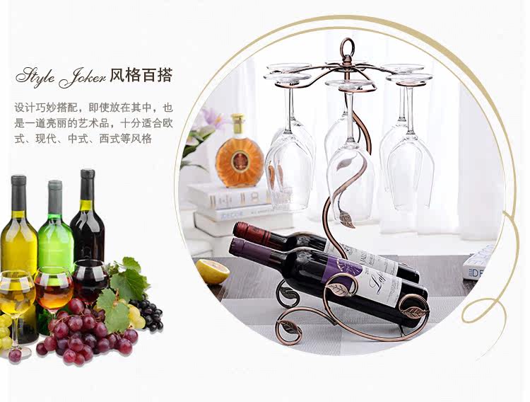 款式四(古銅色)創意鐵藝紅酒杯架倒掛懸掛紅酒架擺件 葡萄酒架掛酒杯架子酒瓶架