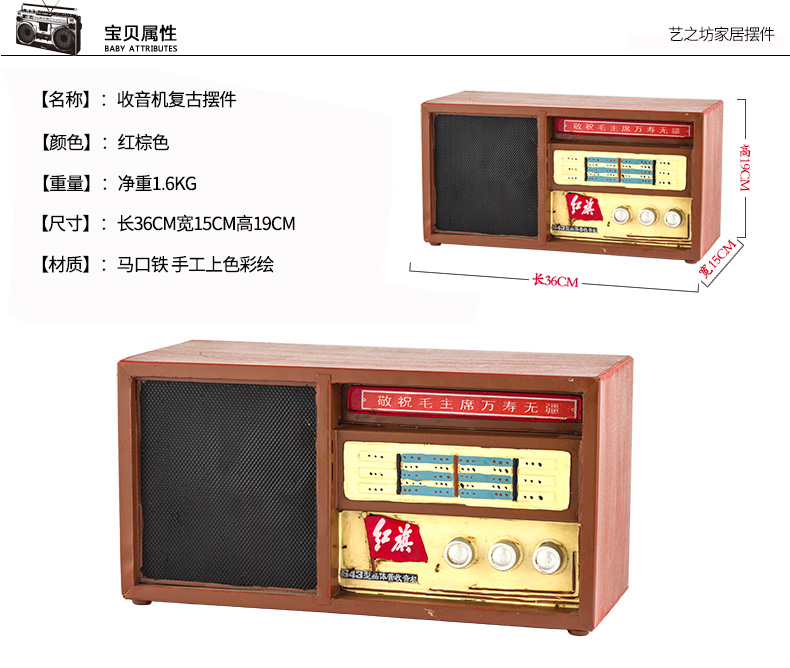 復古懷舊紅旗收音機模型家居陳列客廳擺投工藝品咖啡廳裝飾品擺件