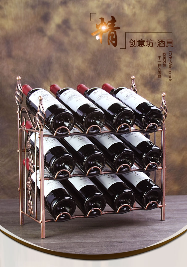 古銅色紅酒架創意鐵藝酒架美式紅酒架歐式懸浮擺件架子水晶紅酒架復古架