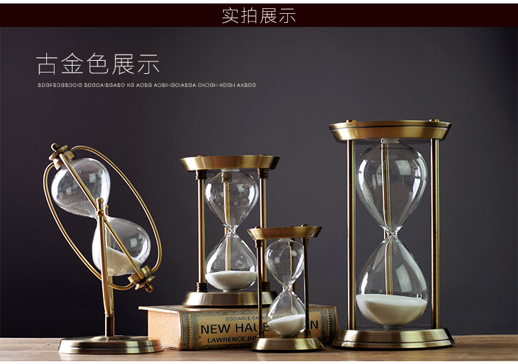 古金色小號(15分鐘)金屬沙漏計時器辦公室擺件現代簡約書房創意北歐風格家居軟裝飾品