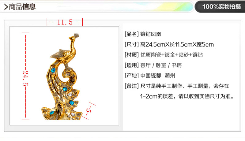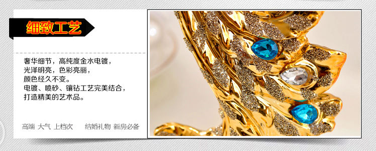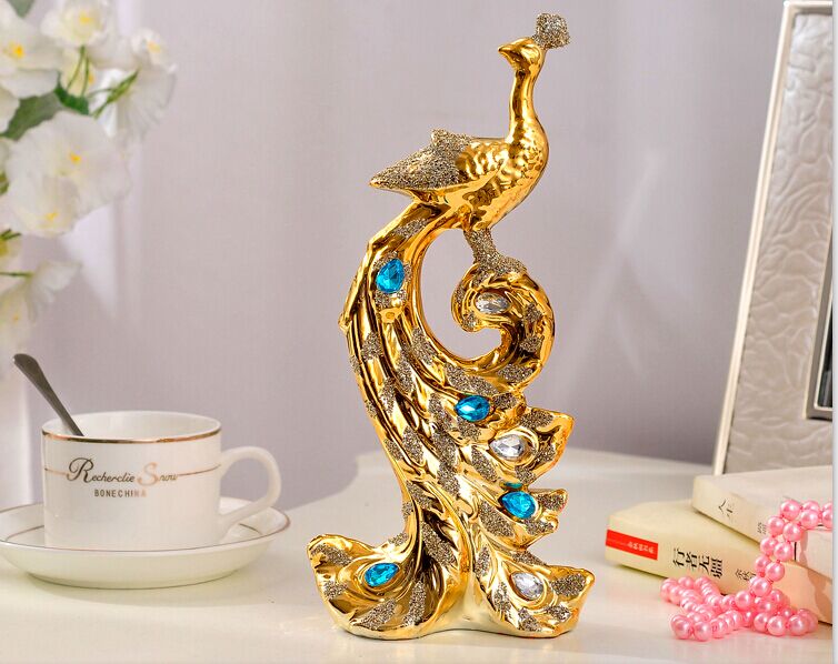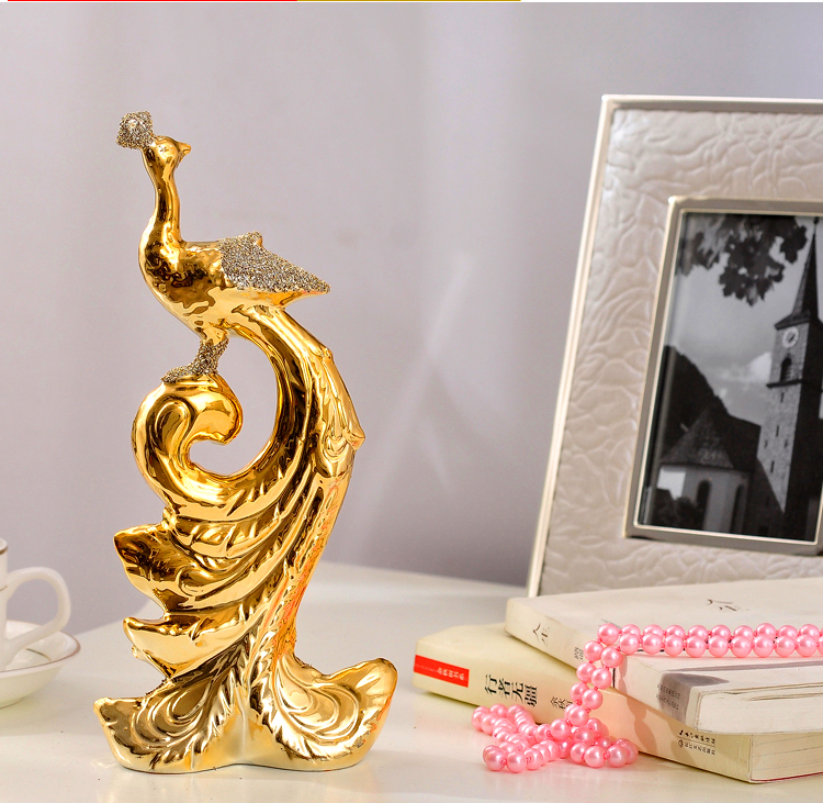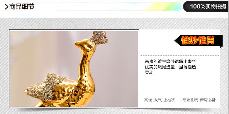 孔雀藍歐式奢華鳳凰小飾品創意陶瓷工藝品結婚禮物家居客廳孔雀擺件歐式