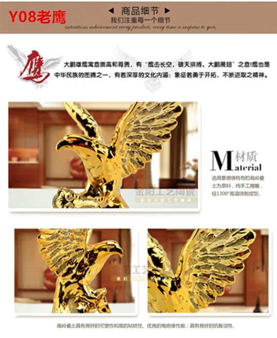 Y08老鷹玄關新款學業辦公擺設歐式家居陶瓷鍍金磨砂客廳如意老鷹擺件
