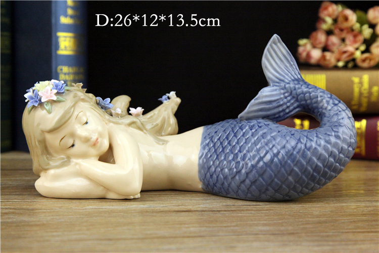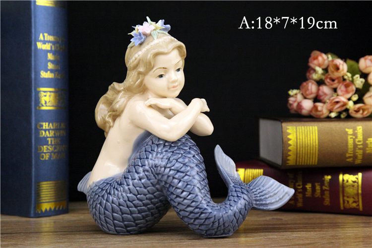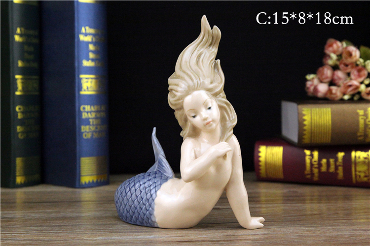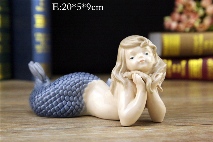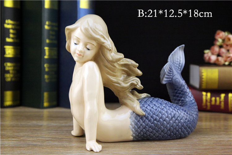 B思思陶瓷美人魚桌面擺件工藝品電視柜玄關書房創意雅致生日禮品