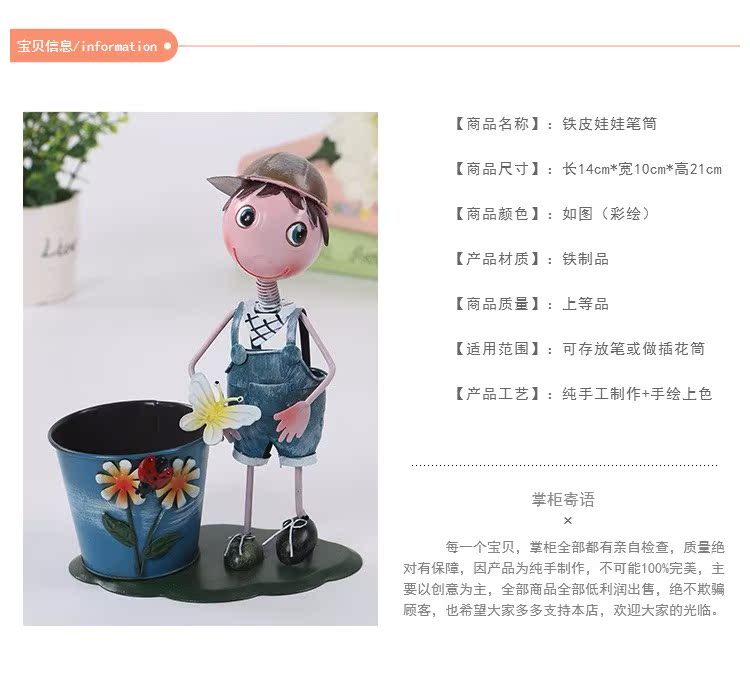 A款娃娃筆筒鐵皮娃娃恩師筆筒教師節禮物送女老師創意實用室內書房裝飾品擺件