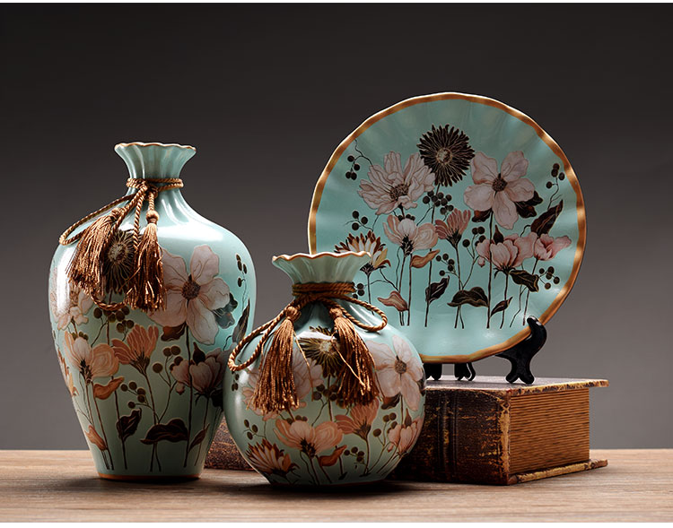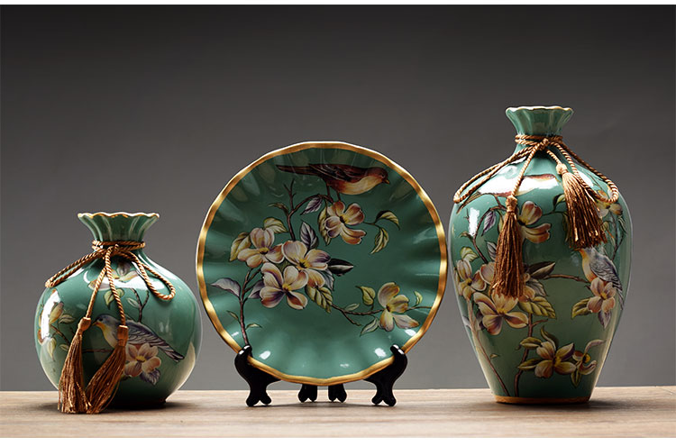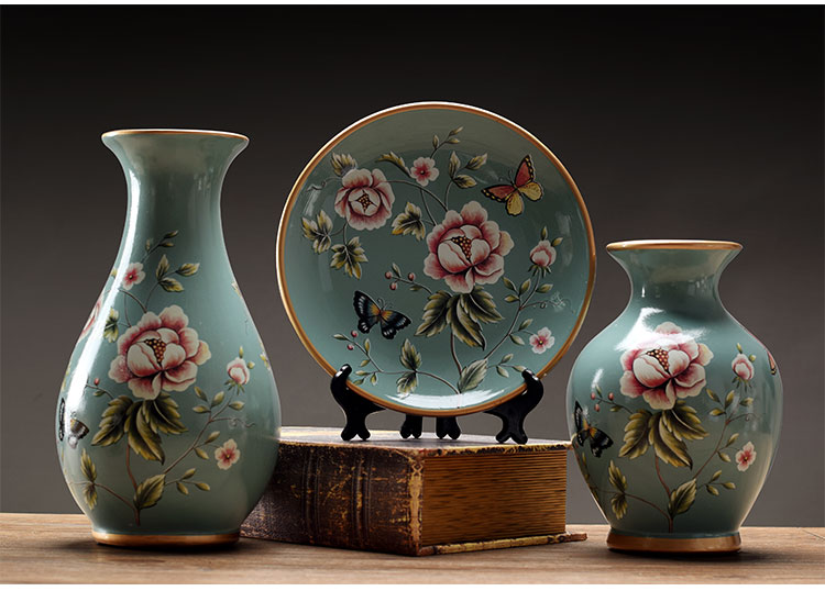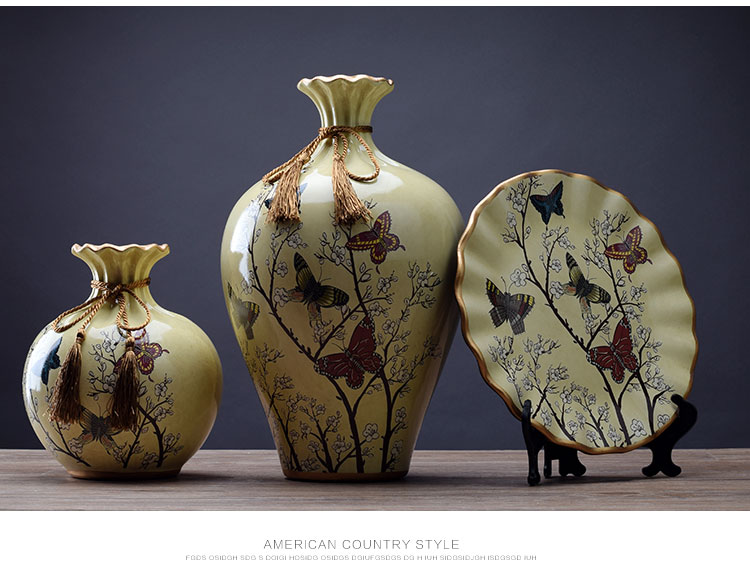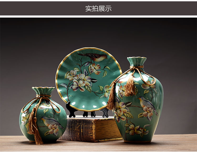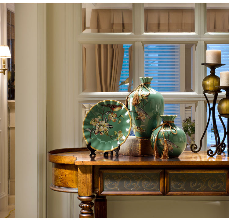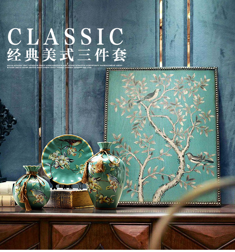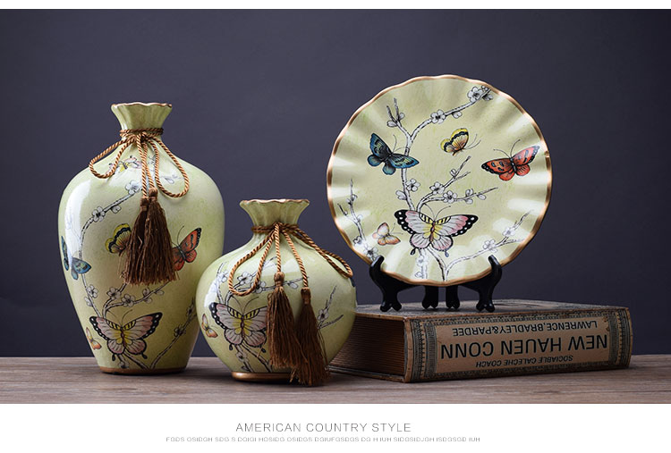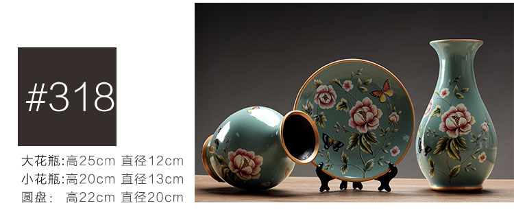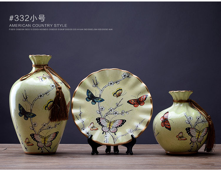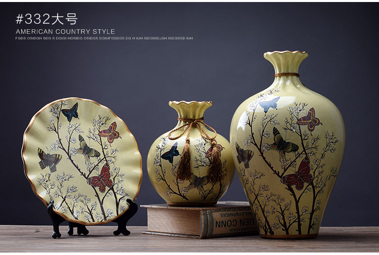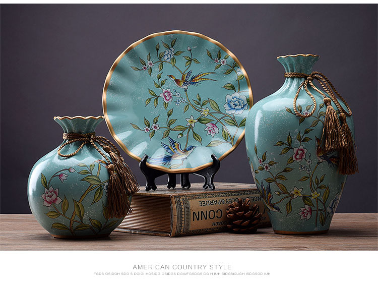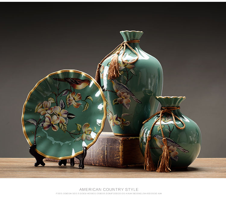 349款(三件套)美式鄉村風格家具上擺件家居飾品客廳電視柜裝飾品陶瓷花瓶三件套