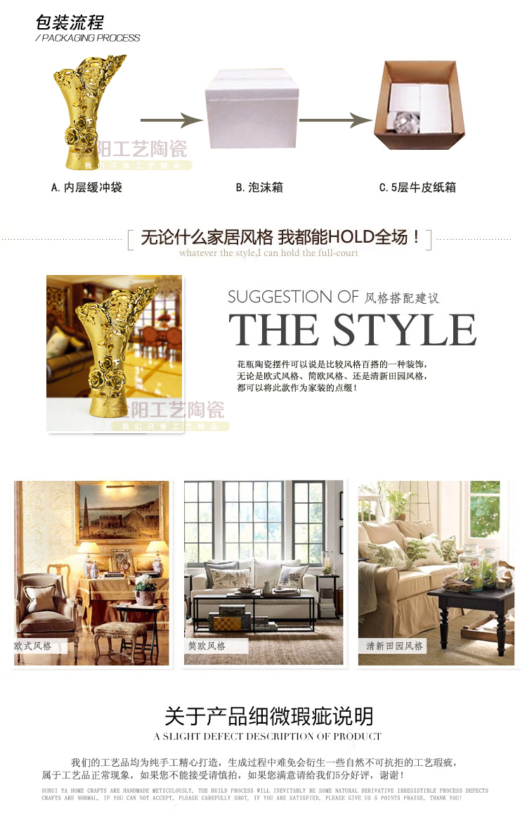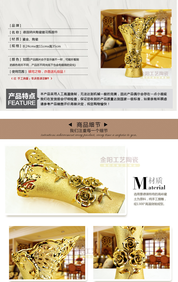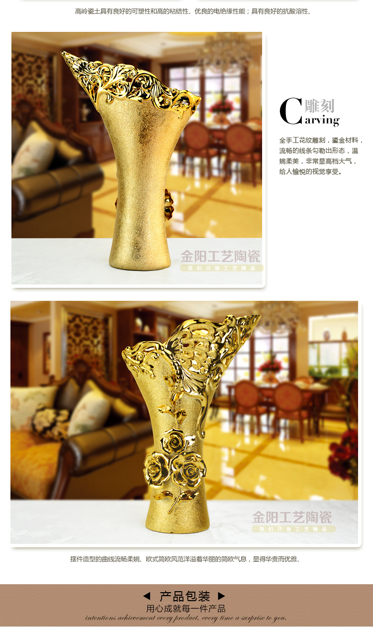 24x11x35歐式鍍金磨砂陶瓷擺件客廳裝飾家裝工藝飾品擺件 玫瑰蝴蝶花瓶